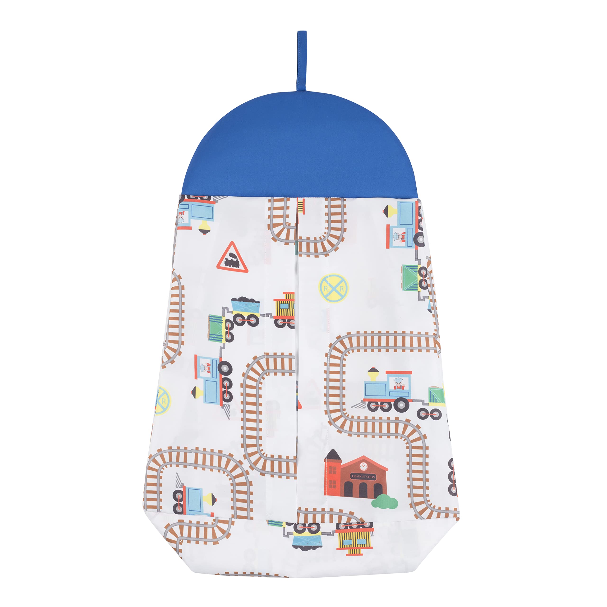 ALSO INCLUDES A HANGING DIAPER ORGANIZER: In coordinating blue and white, the diaper stacker will keep the nursery neat and tidy, with diapers in easy reach.