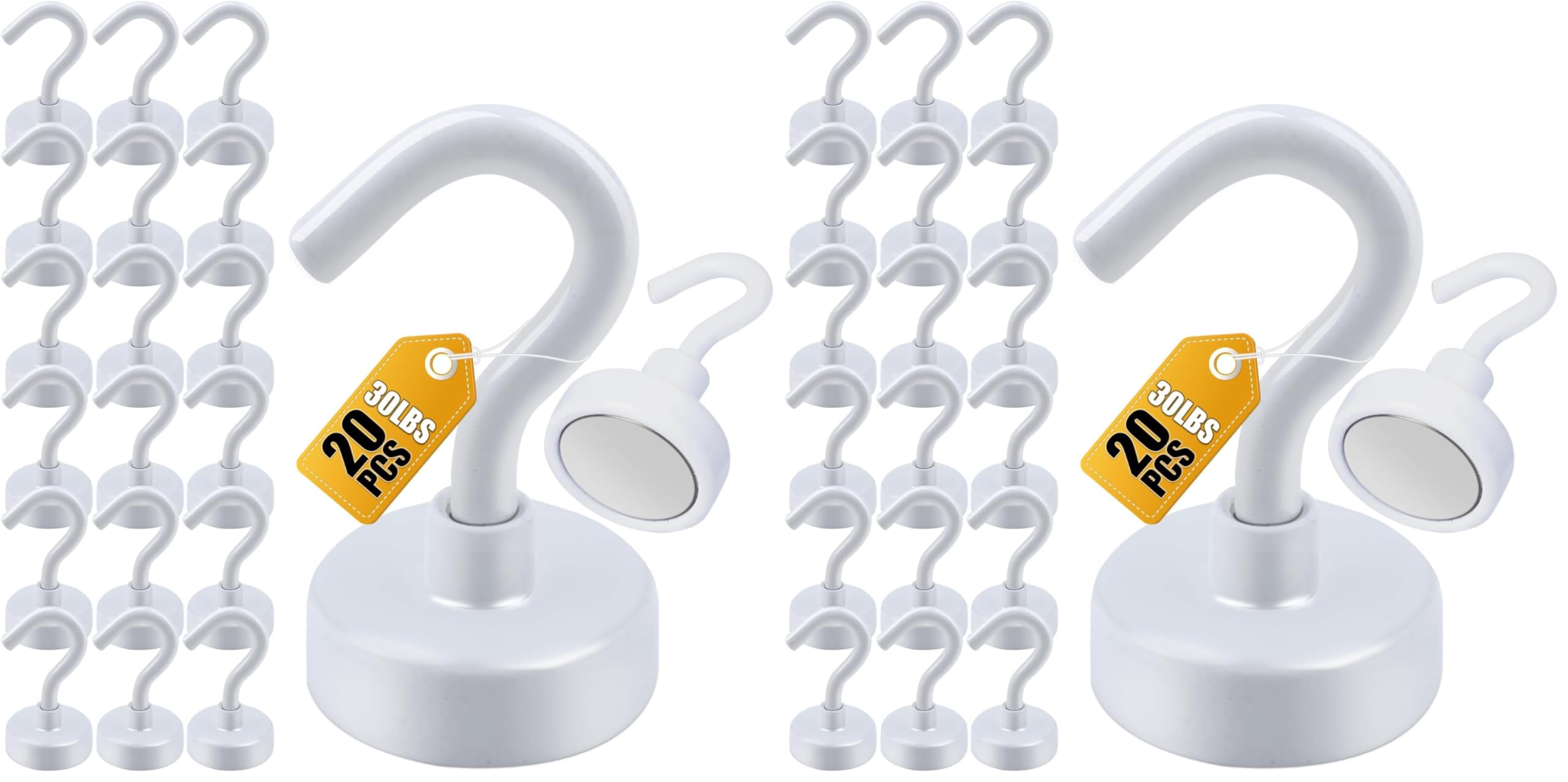 【High Quality】The strong magnet hooks is made of neodymium magnet and high quality A3 steel, the hook is strong and reliable. And the size is very portable 【Super Durablel】The magnetic hooks heavy duty is coated with three layers: Ni-Cu-Ni, so the strong magnets is shiny and anti-rust, provides protection for the magnet hooks and helps the hook to chip or crack. Magnetism is always strong
