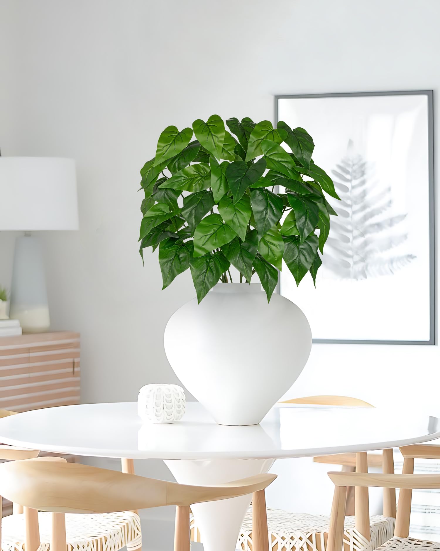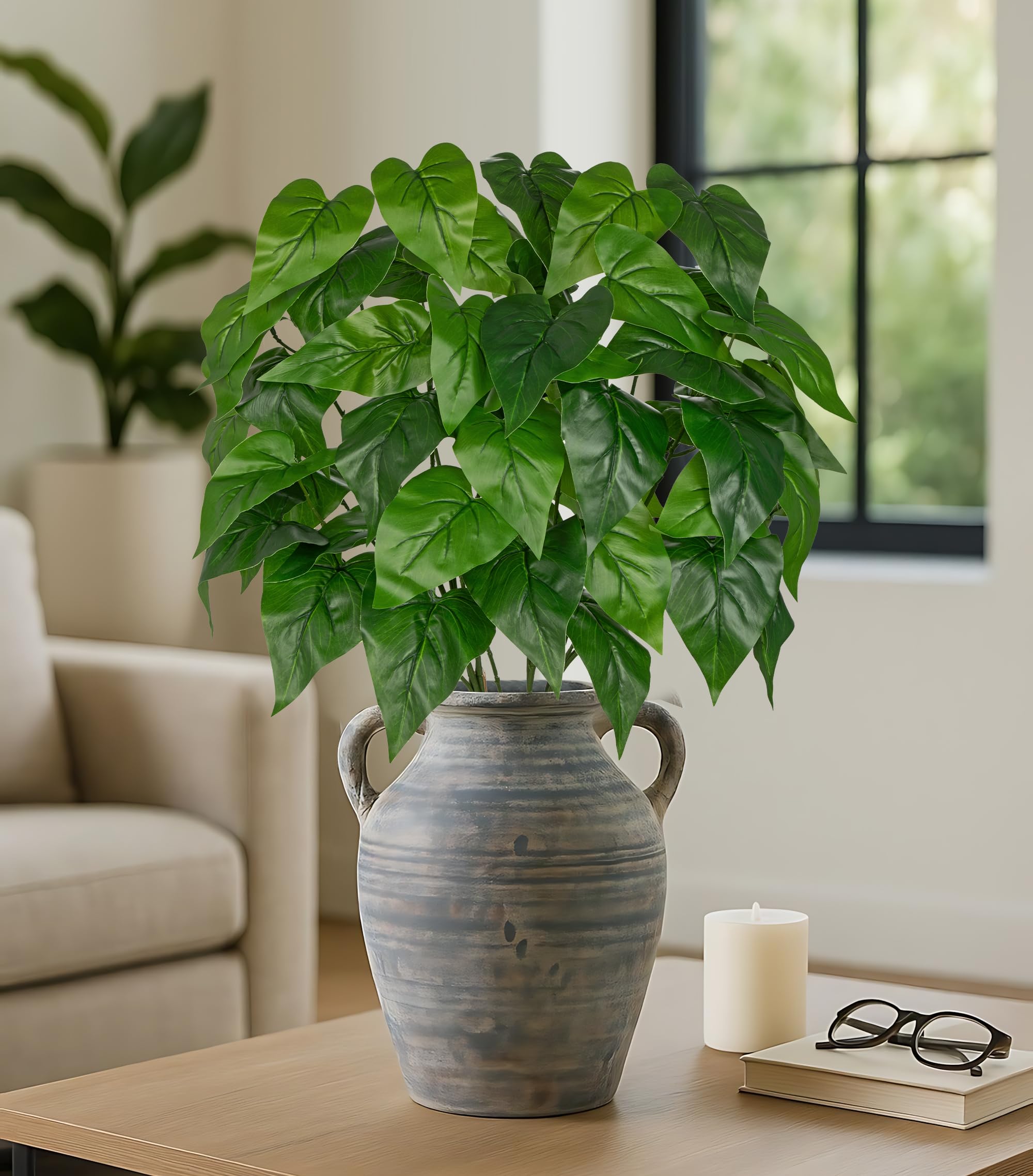 Transform your living space into a lush, vibrant oasis with our premium artificial pothos stems. Designed to mimic the natural beauty of real pothos plants, these faux greenery stems bring a touch of nature to any room without the hassle of watering, pruning, or sunlight maintenance. Whether you’re sprucing up your home, office, or commercial space, our fake pothos plant stems offer a timeless, low-maintenance solution for elevating your decor. What You Get Each package includes 2 bundles of artificial pothos stems, totaling 6 individual stems. Each stem measures approximately 35.4 inches (90 cm) in height, providing ample length to create full, lush arrangements. Please note that slight variations in height, size, and color may occur due to manual measurement and production processes, ensuring each piece has a unique, natural appearance. Premium Quality & Realistic Design Crafted with meticulous attention to detail, our faux pothos stems feature vibrant, lifelike green leaves with natural veining and texture, closely resembling the appearance of real pothos foliage. The flexible, sturdy stems are made from durable materials that maintain their shape and color over time, resisting fading, wilting, or damage from indoor conditions. Each leaf is carefully shaped to replicate the organic curves and lush density of a healthy pothos plant, creating a convincing, natural look that enhances any decor style. Versatile Decor Options Our artificial pothos stems are incredibly versatile, making them perfect for a wide range of decor applications: - Home Decor: Create stunning centerpieces for dining tables, coffee tables, or mantels; add greenery to empty corners, shelves, or windowsills; or use them to fill large planters, vases, or hanging baskets for a dramatic, lush display. - Office & Commercial Spaces: Brighten up workspaces, reception areas, or conference rooms with low-maintenance greenery that boosts productivity and creates a welcoming atmosphere. - Event & Party Decor: Use these fake pothos stems to create beautiful backdrops, table runners, or floral arrangements for weddings, birthdays, baby showers, and other special occasions. - Outdoor Covered Areas: Enhance covered patios, porches, or balconies with weather-resistant faux greenery that stays vibrant year-round, even in shaded or low-light environments. Key Benefits ✅ Low Maintenance: No watering, pruning, or sunlight required—enjoy the beauty of nature without the upkeep. ✅ Durable & Long-Lasting: Made from high-quality materials that resist fading, wilting, and damage, ensuring years of use. ✅ Realistic Appearance: Lifelike leaves and flexible stems create a convincing, natural look that complements any decor style. ✅ Versatile & Customizable: Mix and match with other artificial plants, flowers, or decor elements to create unique, personalized arrangements. ✅ Pet & Child Safe: Non-toxic materials make these fake plants safe for homes with pets and children. Important Notes Due to manual measurement, there may be slight deviations in height, size, and color of the artificial pothos stems. The stems are flexible and can be bent or shaped to fit your desired arrangement, but avoid excessive bending to prevent damage.