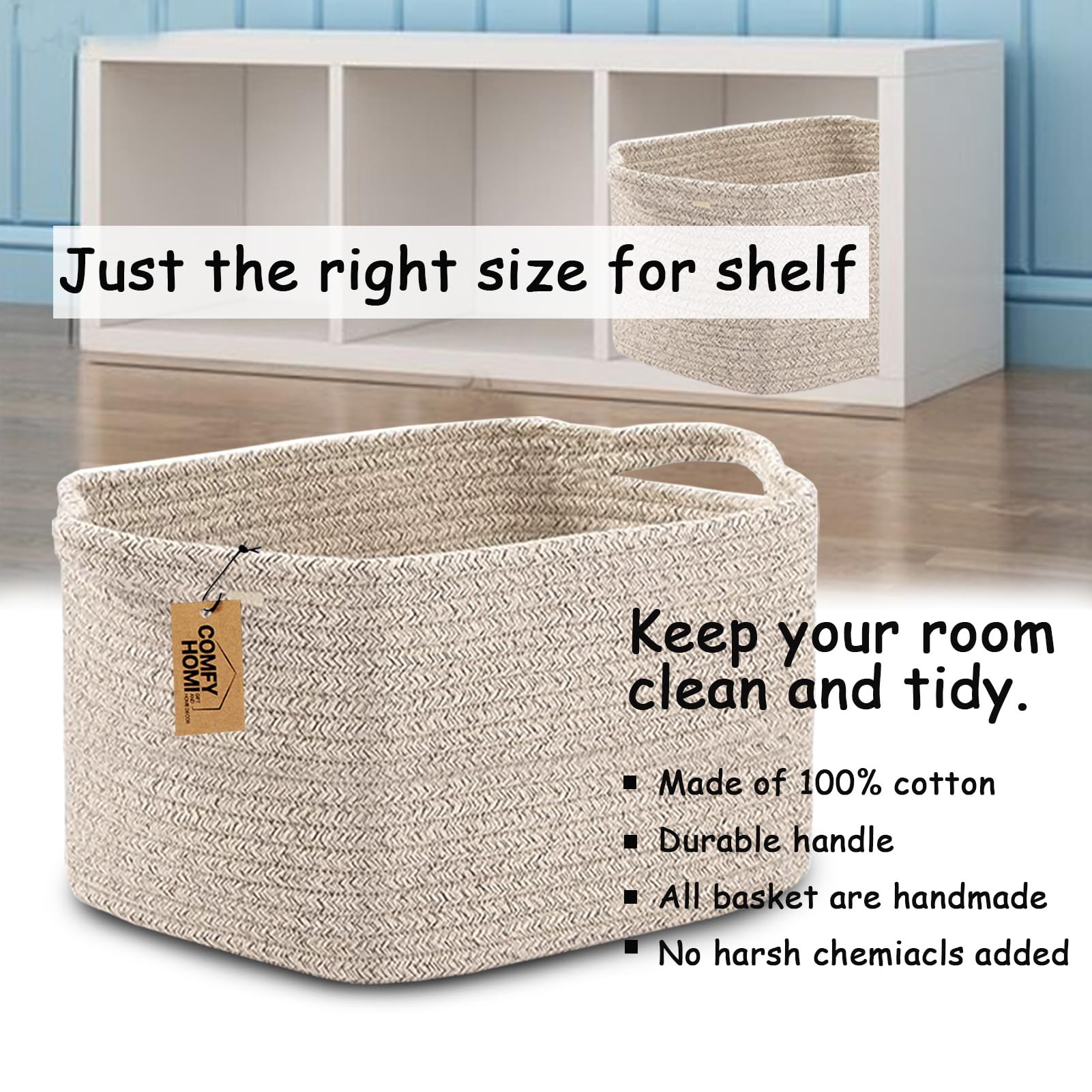 Suitable Storage Bin : The basket for organizing -13.5 x 11 x 9.5 inch- is decorated for shelf, closet, wardrobe and any table