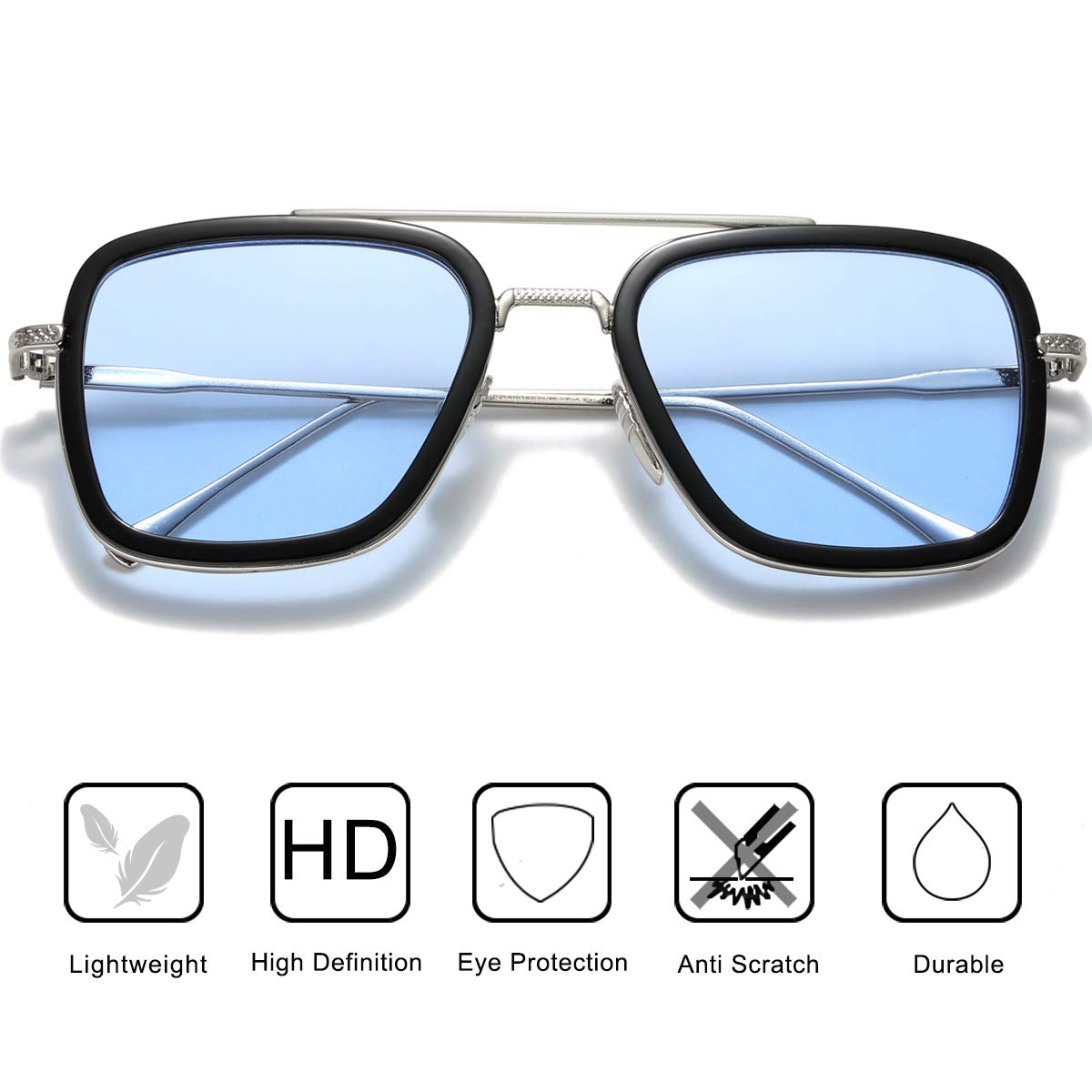 Tony Stark Sunglasses Design: Classic movie character Tony Stark designed for 2019 fashion. Tony Stark gave Peter Parker sunglasses. One to one to create the original style, a variety of colors, color your world and complement your look with perfect glare free vision. Deflects envious glances and gives you that unique look