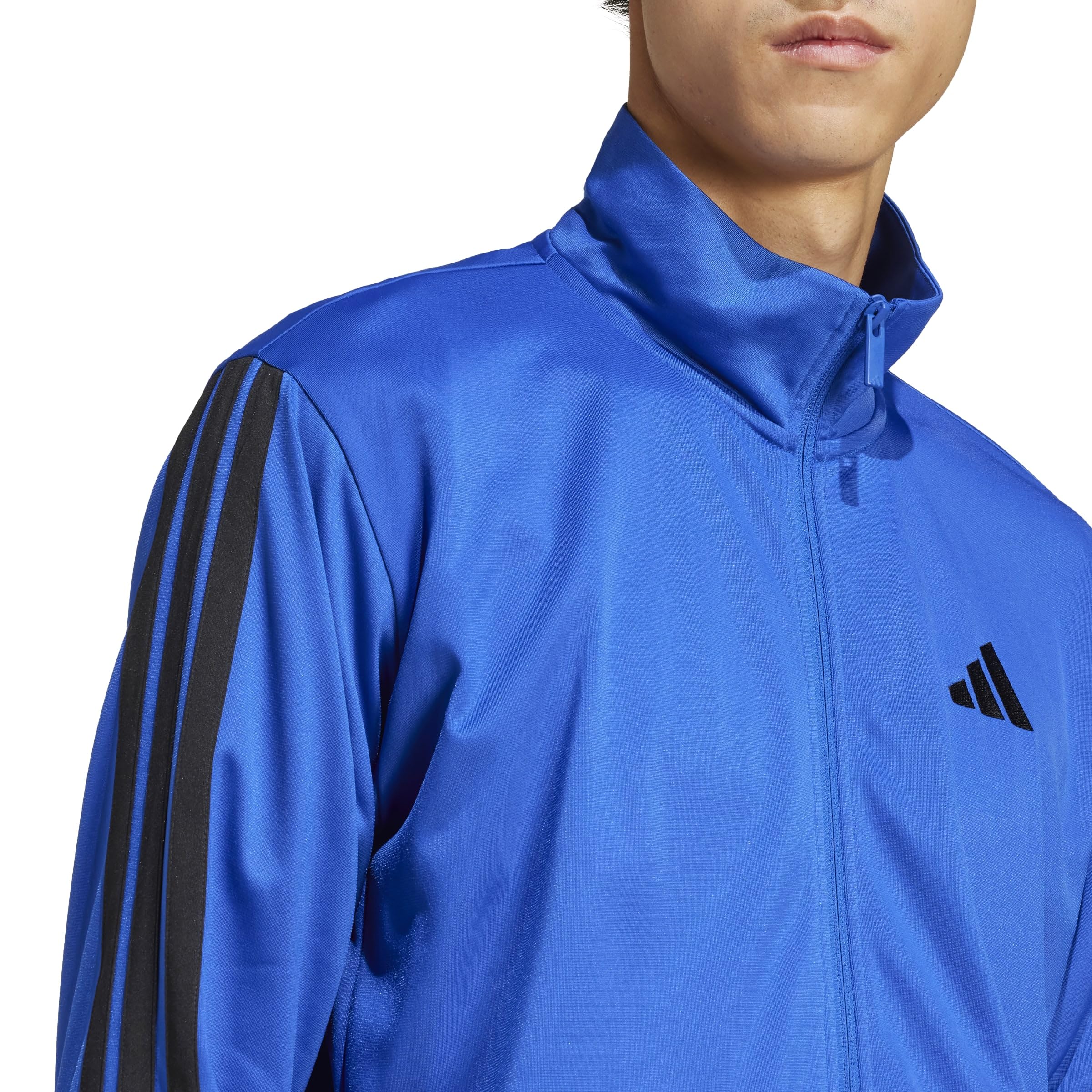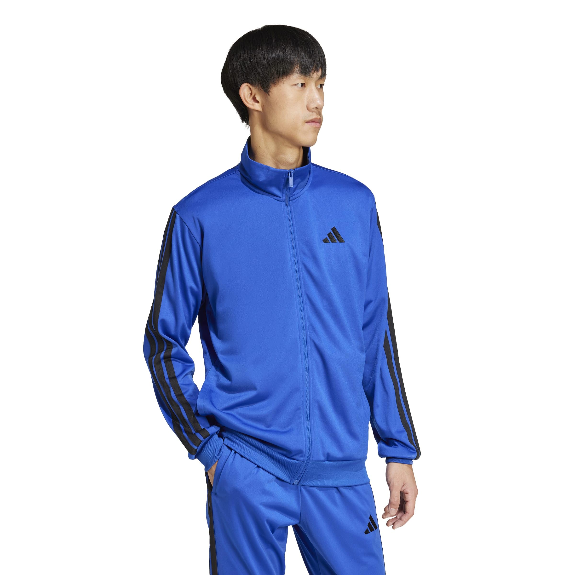 Description The perfect stylish layer for cooler days and nights. This men's adidas track jacket is made from soft and warm knit fabric and has a stand-up collar for a classic look. 3-Stripes down the sleeves and an embroidered 3 Bar Logo on the chest add sporty flair.
