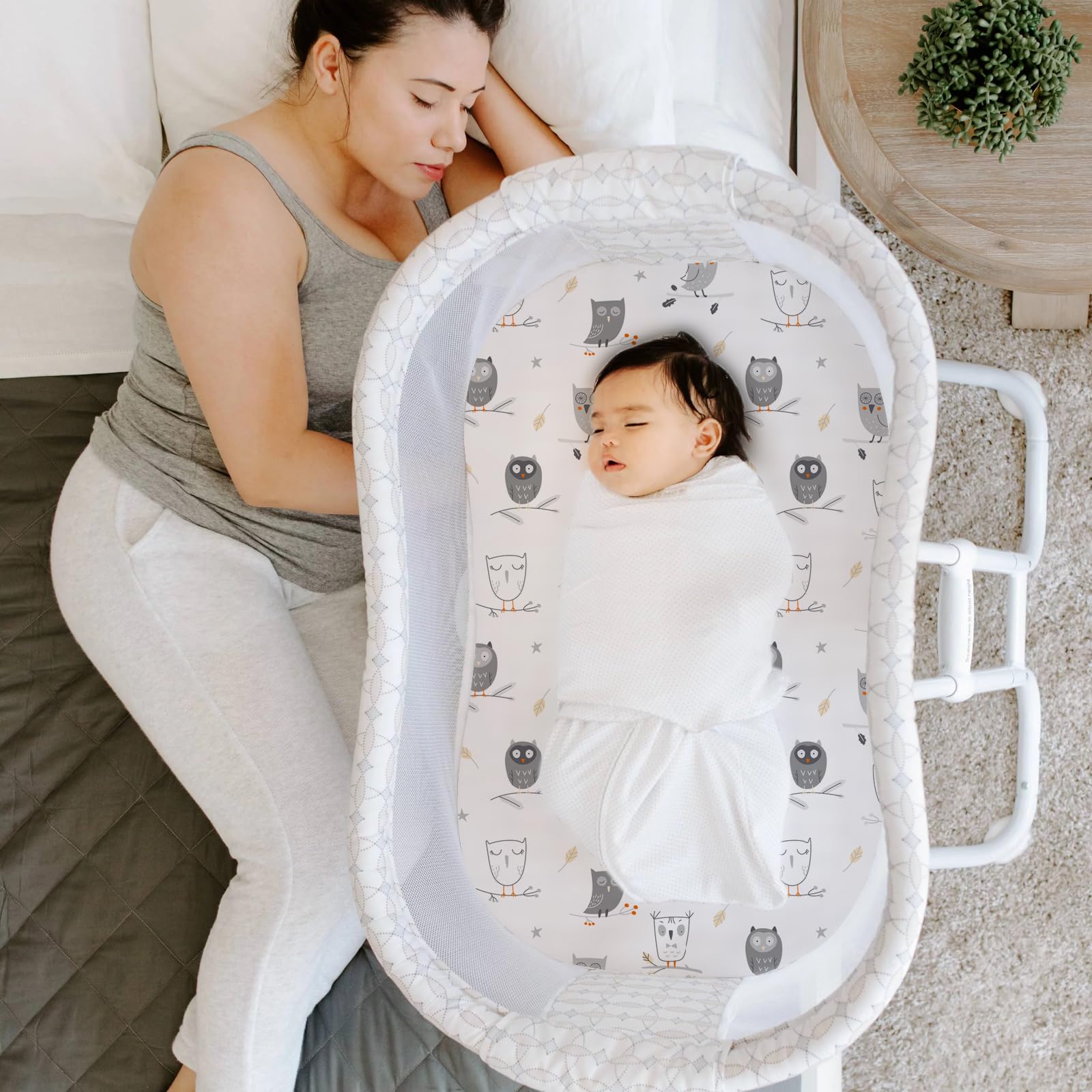 UNIVERSAL FIT BASSINET SHEETS FOR ALL CRADLE MATTRESSES:Our bassinet sheets are designed to fit all bassinet mattress pads, including oval, round, rectangle, and hourglass shapes. Whether you’re using a bedside sleeper, Moses basket, or standard bassinet, these bassinet sheets feature stretchy elastic edges for a snug, secure fit that won’t slip or bunch.
