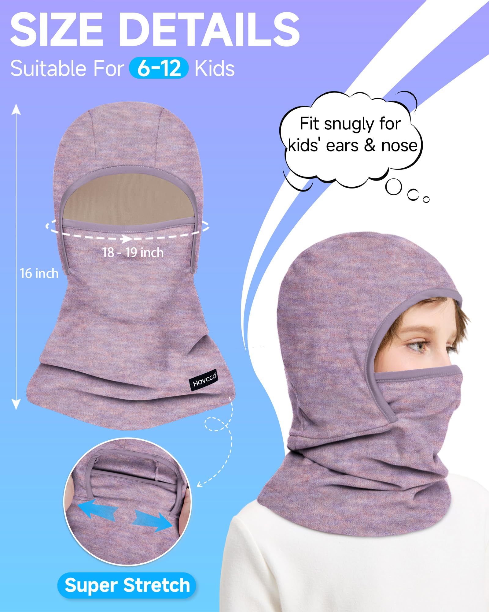 HIGH ELASTICITY & FITS MOST: The winter face mask for kids is stretchy on all sides, allowing it to adapt to most face shapes and head sizes. Suitable for boys and girls aged from 6 to 12 without being too tight or losing its shape, providing both warmth and flexibility for all outdoor activities. Additionally, this kids balaclava is machine-washable and durable.