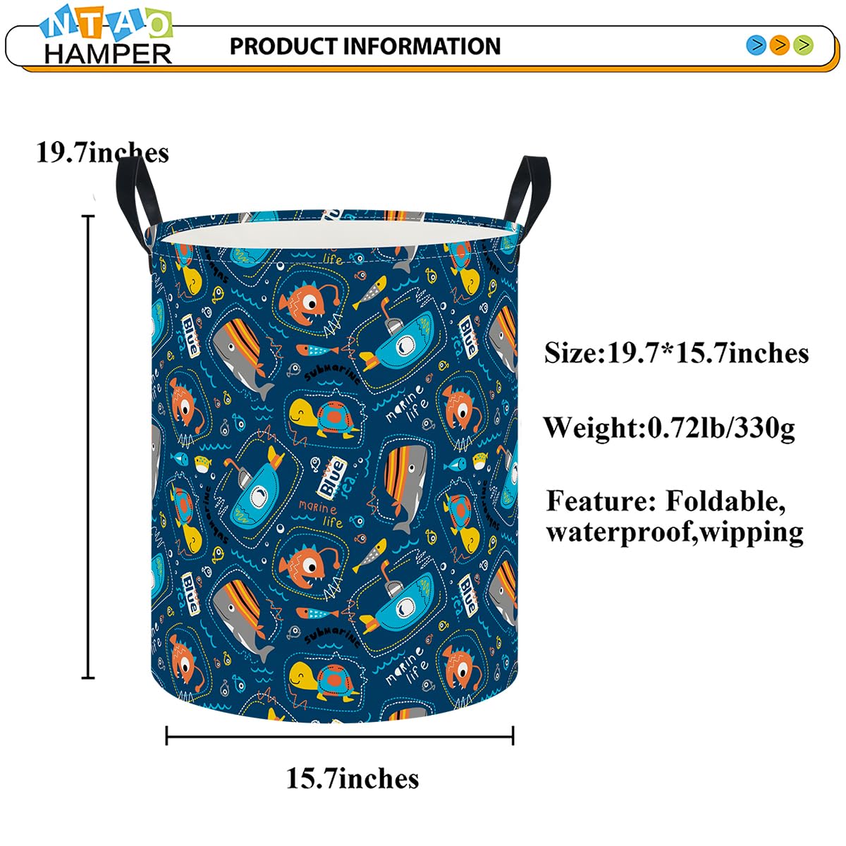 LAUNDRY BASKET SIZE:19.7 inch (H) x 15.7 inch (D),Perfect size for clothes orgnizer,nursery room,beautiful room decor.