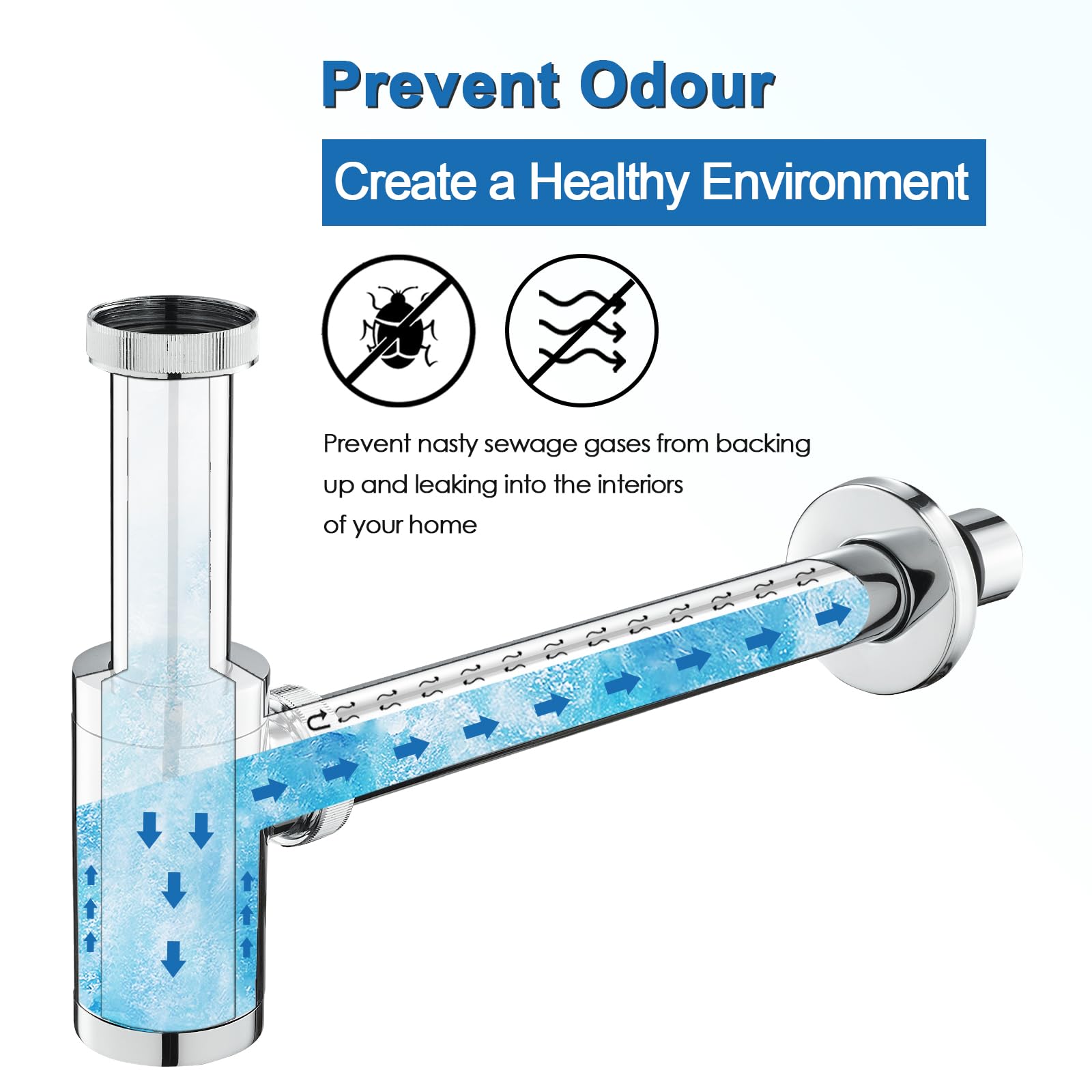 【Premium Material】Bottle Trap is crafted from high-quality solid brass and stainless steel pipe to ensure excellent performance and long-lasting durability. It is more durable than plastic and alloy, offering better resistance to corrosion and rust.