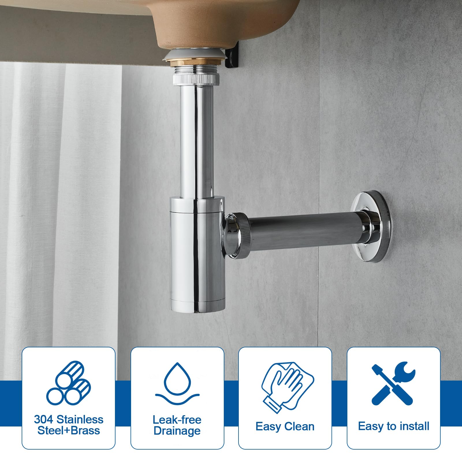【High Applicability】The Sink Waste Trap Drain Kit is designed to fit the US plumbing standards with its 1-1/4" diameter slip inlet and 1-5/8" joint out. This means it can be easily installed and connected to most bathroom basin sinks without any hassle.