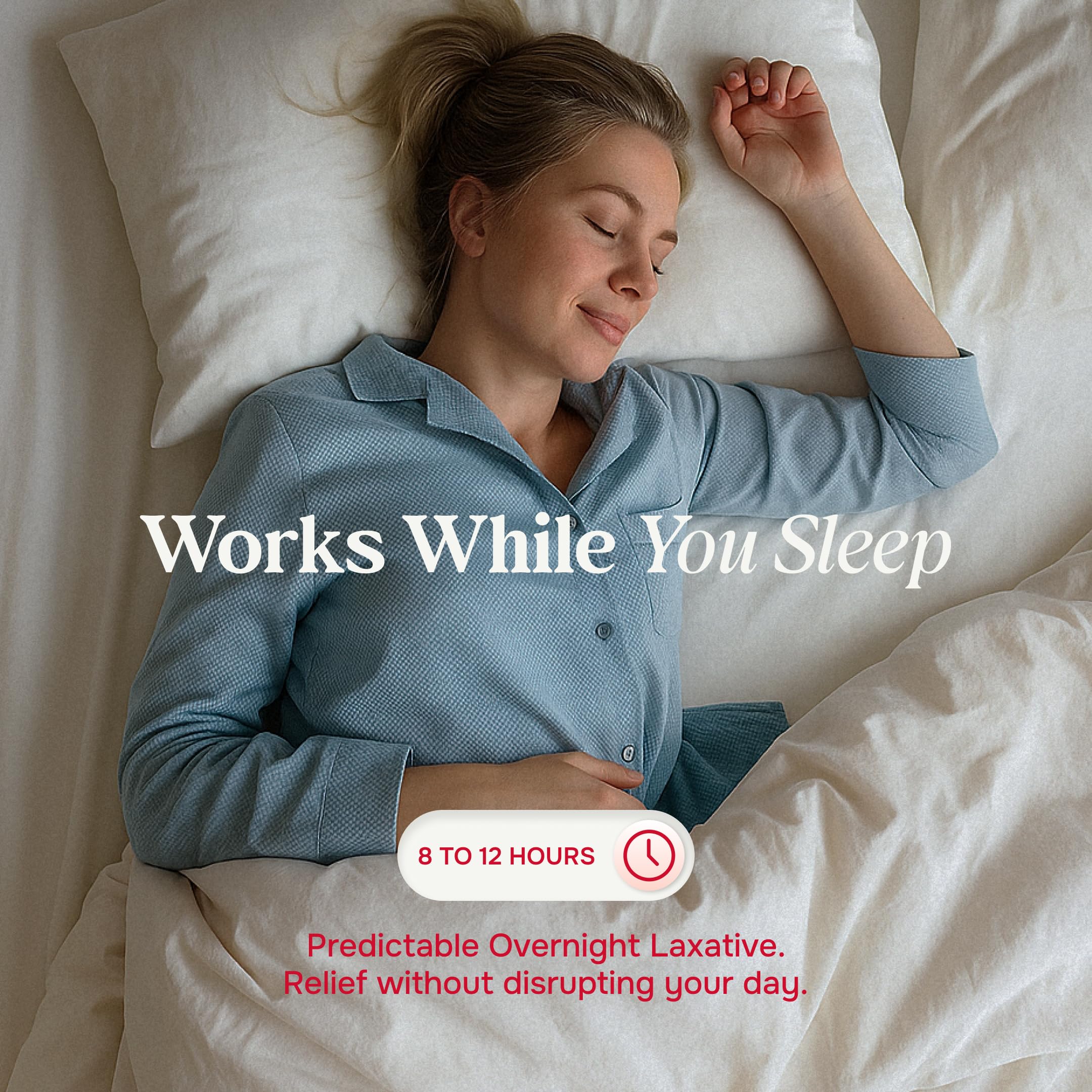 Predictable Relief: Prunelax offers gentle & predictable overnight relief, helping you unwind and ensuring a comfortable night's sleep.