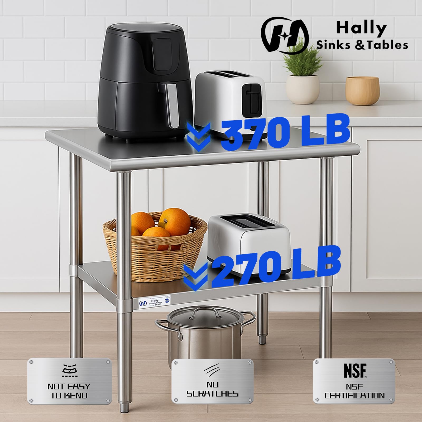 Large & Practical Storage**2 layers: 370 lb. top shelf weight capacity; 270 lb. undershelf weight capacity. Dimension 24 x 18 inches, offer you enough storage room for microwave oven, kitchen utensils or any other tools