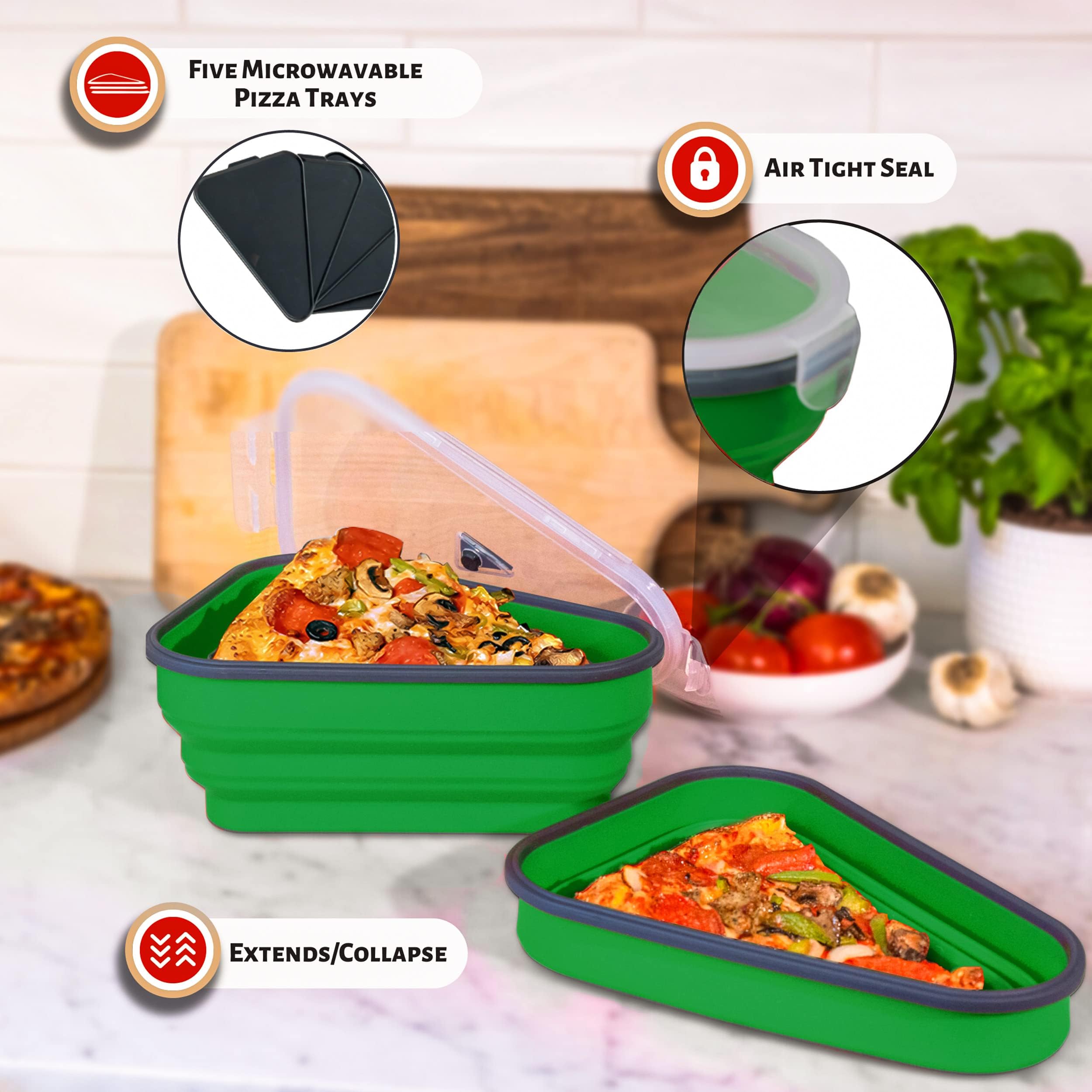 SPACE SAVER - Each pizza container collapses and expands to accommodate the number of pizza slices you have. Perfect for storing leftover pizza without a pizza box taking up the whole shelf!