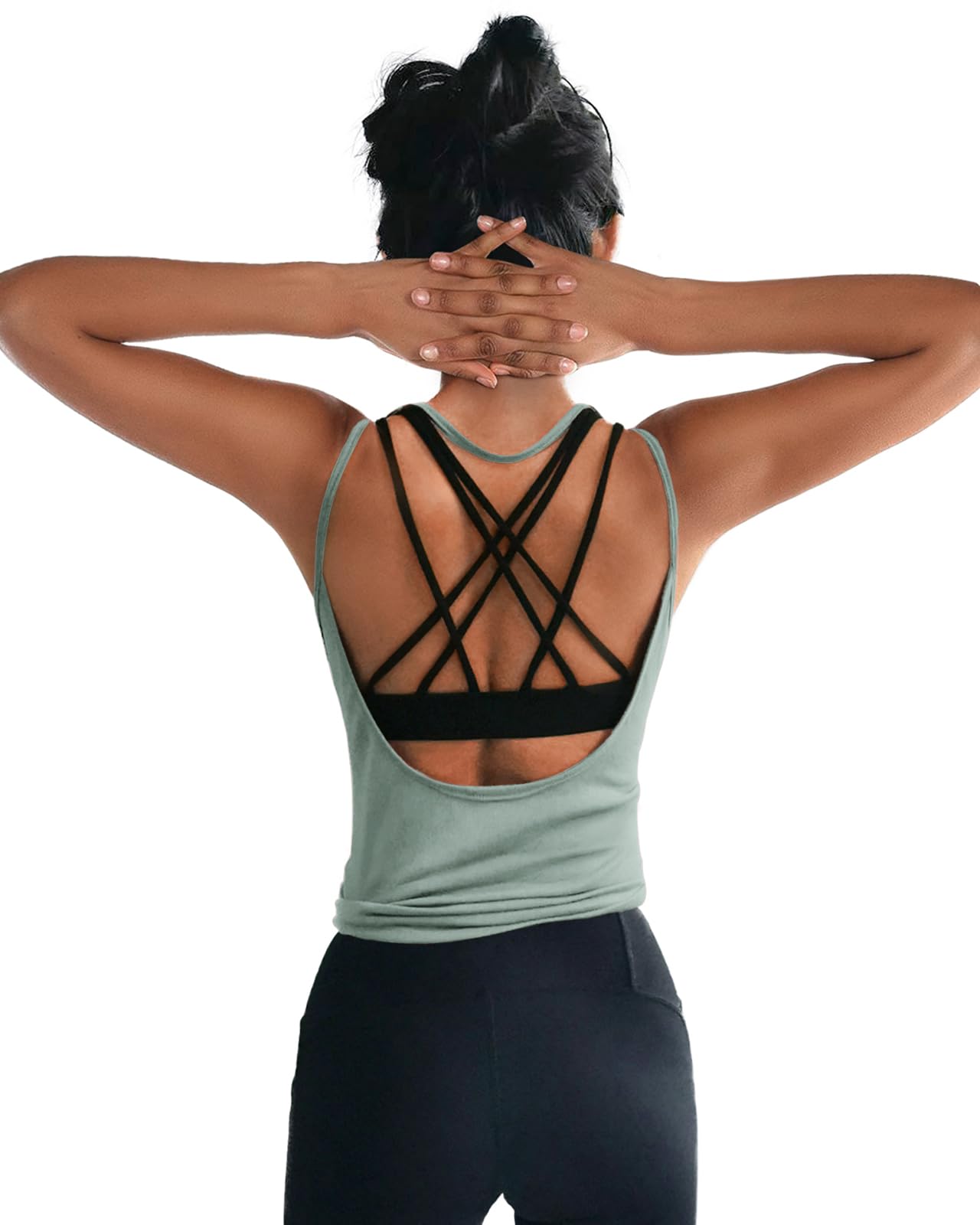 Design : This top is made of a light stretchy knit fabric. It is with unique and interesting backs, has a cooling effect on the skin, just what you want to stay cool in the summer while working out