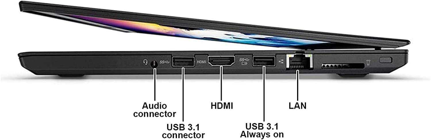 Key Features and Benefits: Brand: Lenovo Model: ThinkPad T470 Time to Market: 2017 Memory: 16 GB RAM DDR4 Hard Drive: 256 GB Solid State Drive CPU: Intel Core i5-7300U Processor, 2.6GHz up to 3.5GHz (2-cores, 4threads, 3MB) Color: Black Operating System: Windows 11 pro 64 Bit Wireless Technology: 802.11ac, Bluetooth 4.1, Wi-Fi Assembled Product Dimensions (L x W x H):13.35 x 9.15 x 0.94 Inches Weights: 4.01lbs System Ports: 1 x HDMI 3 × USB 3.0 1× Thunderbolt 3 1 x Power connector 1 x RJ45 (network interface) 1 x 2-in-1 headphone/microphone jack 1 x 4-in-1 card reader (MMC, SD, SDHC, SDXC) Includes: Laptop Power Adapter/ Cable 90-day service