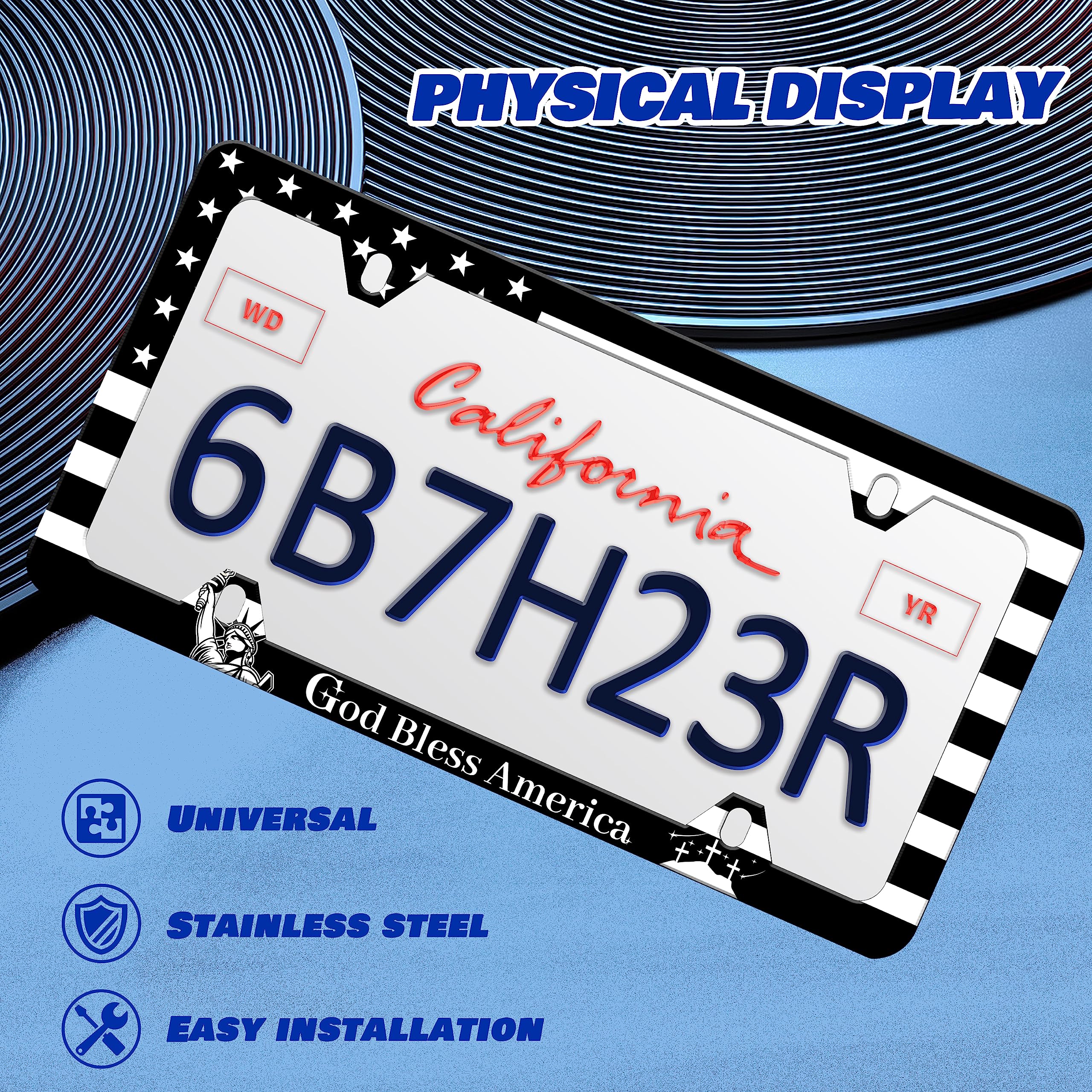 The size of the license plate frame is: 12 x 6 inches, it fits all standard size US vehicle license plates.With compatibility, the stylish design frame fits perfectly on your car license plate.
