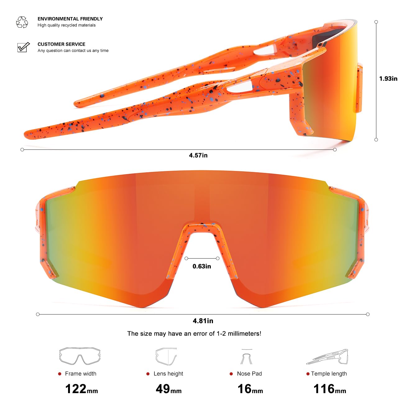 KIDS BASEBALL SUNGLASSES - fashion polycarbonate frames, enhancing the youthful style of teenagers. The wrap-around design offers better eye protection, providing a broader field of vision while effectively shielding the eyes from dust, wind, and other elements, ensuring comprehensive eye protection. Suitable for kids aged 6-12.