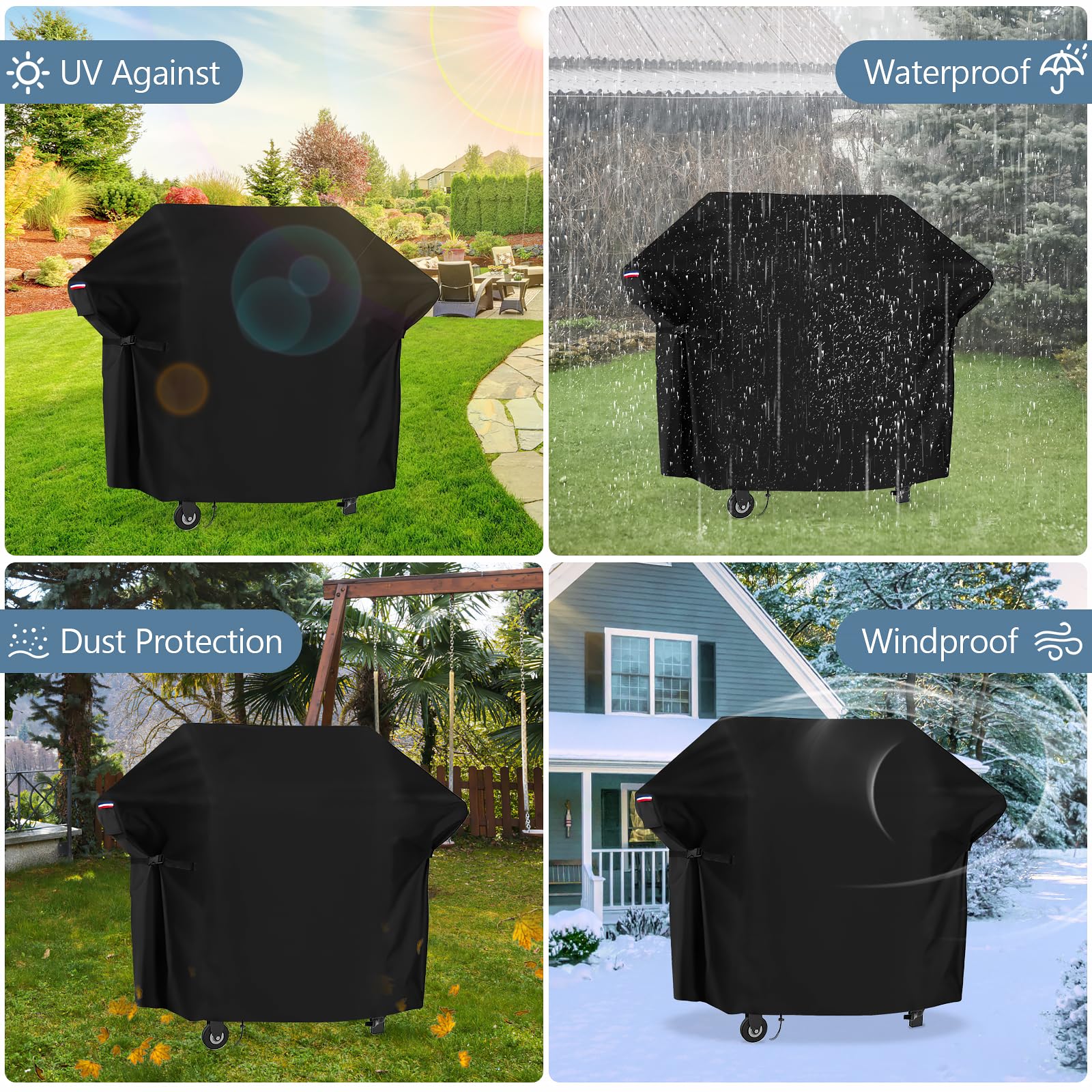 Strong Protection: Provides a powerful guard against any weather: snow, hail, rain and wind etc. With our griddle cover, you can feel free to place your grills beside pool or on the yard. Extend the lifetime of your bbq grill stand