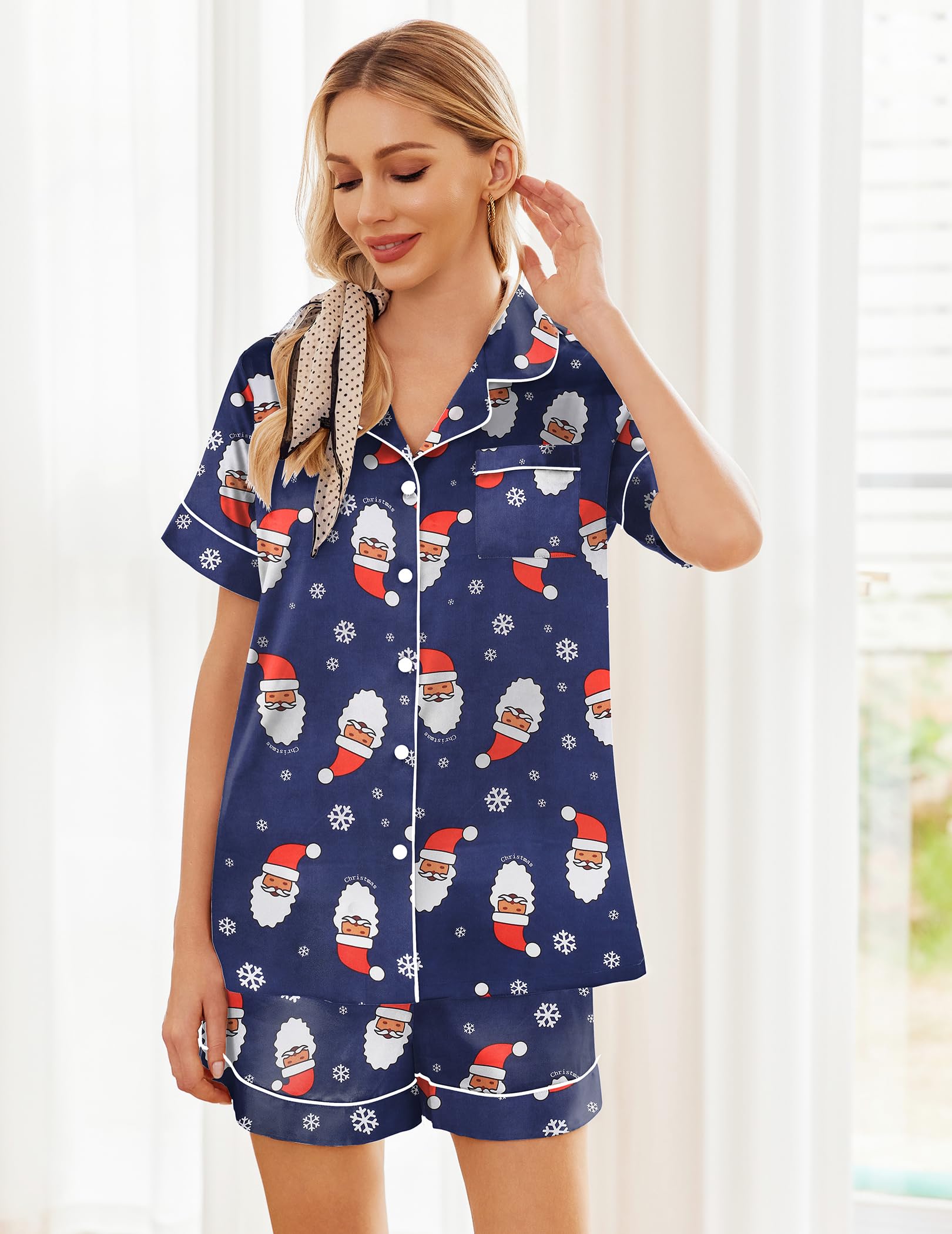 Pajama Top:Sleepwear for women with short sleeve,notch collar,button up pjs top and one chest pocket design.Skin-friendly satin pajamas for women which is great for sleeping,casual wear or lounging