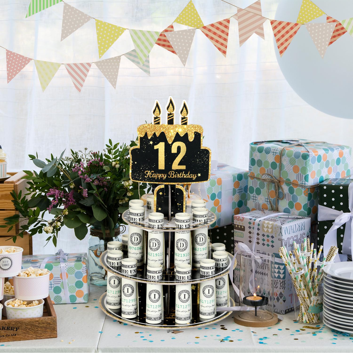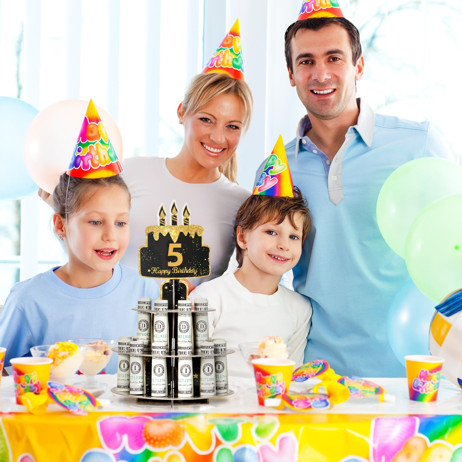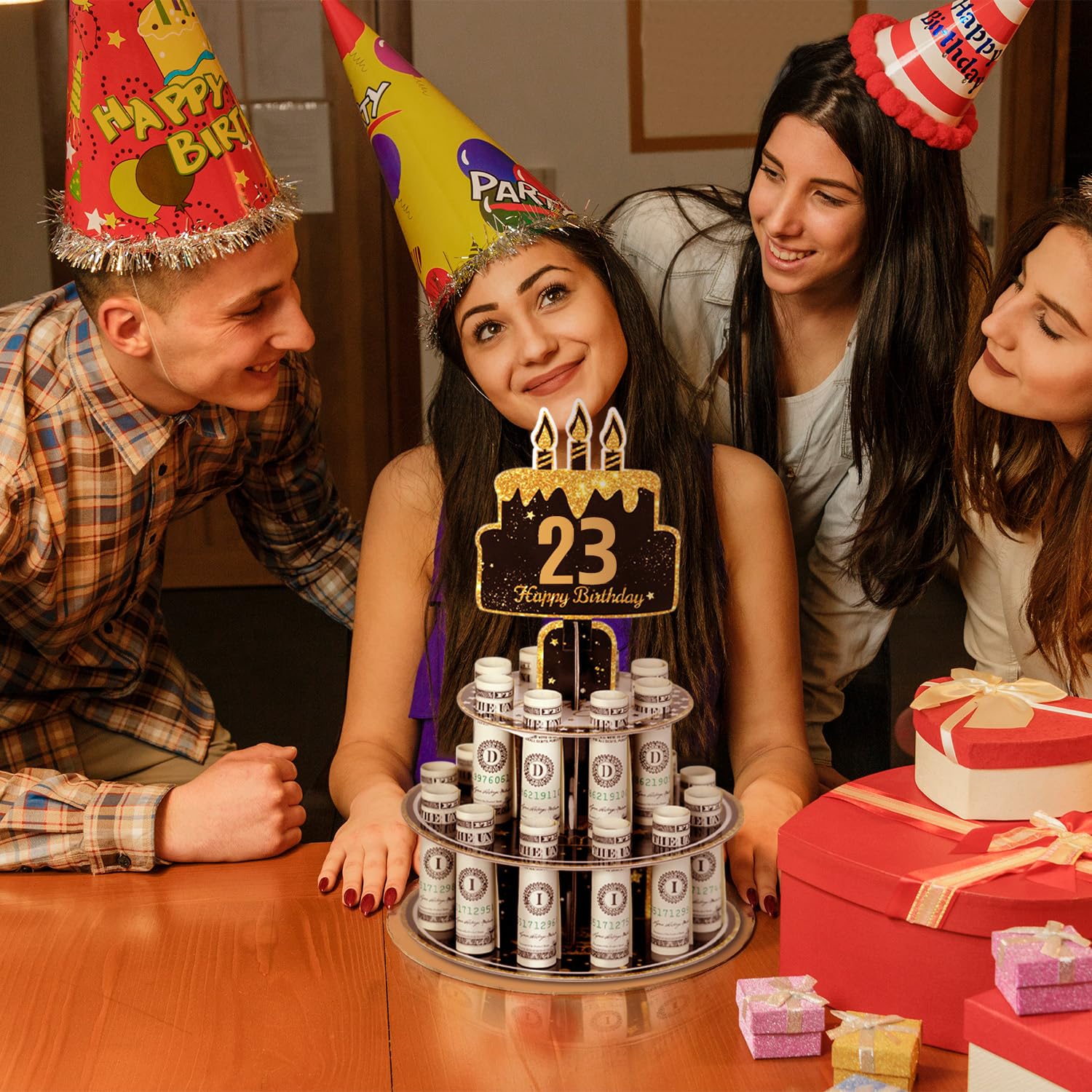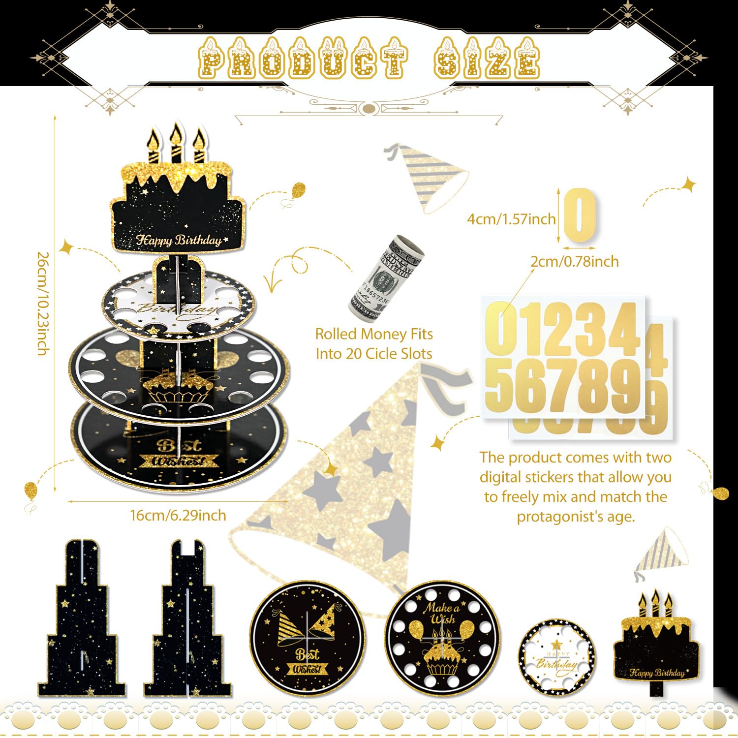 Celebrate in Style Money Cake: Make birthdays unforgettable with this 10.23-inch birthday-themed money holder! Featuring 20 designated 0.5-inch slots for rolled bills, this vibrant 3-tier presentation creates a stunning cash cake, measuring 6.29 inches wide