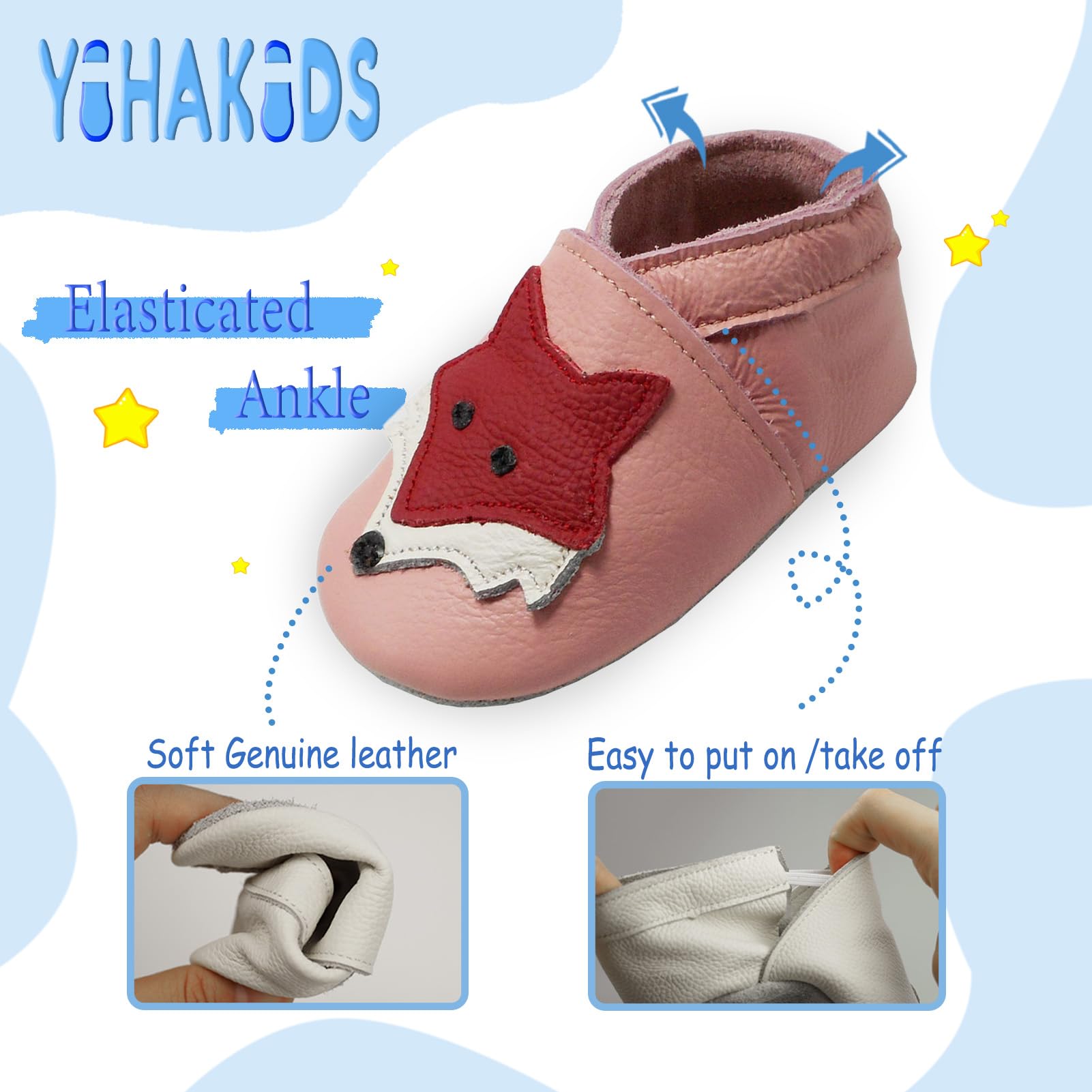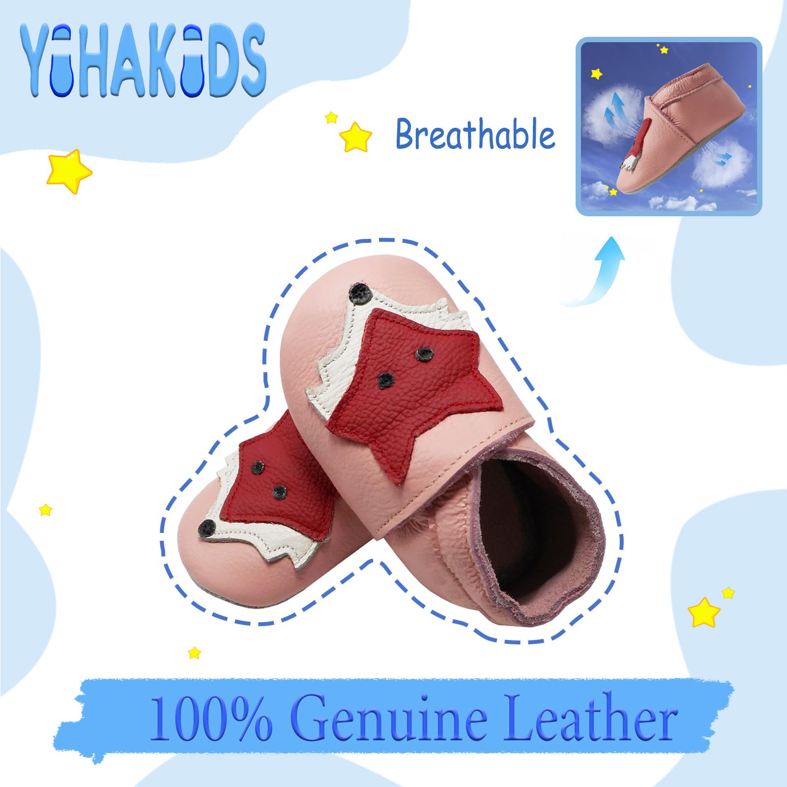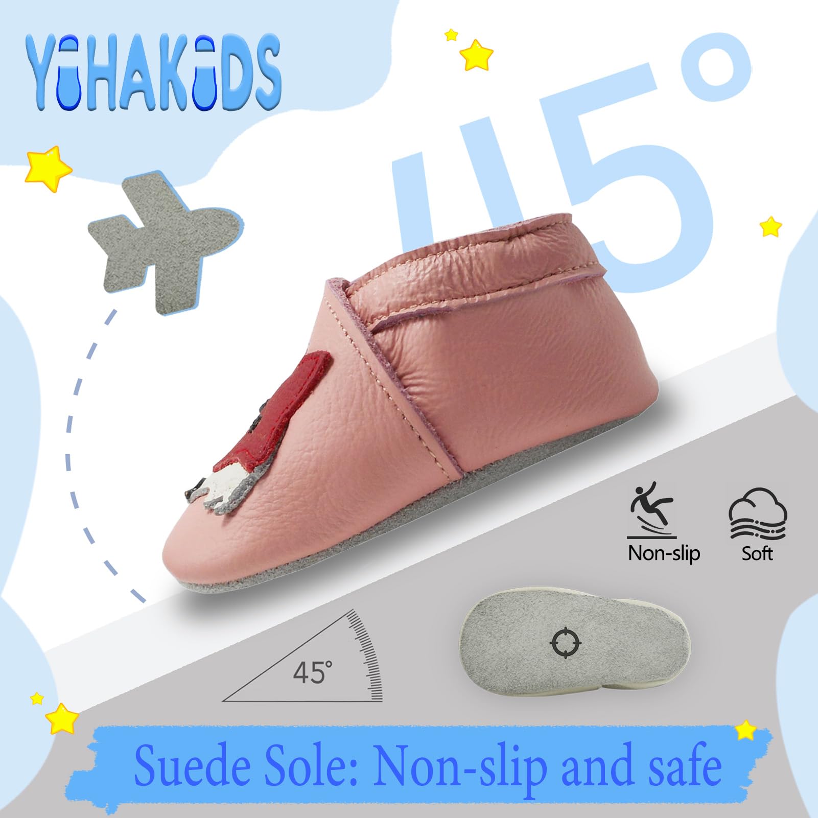YIHAKIDS baby shoes with natural genuine leather, comfortable non-slip suede sole.