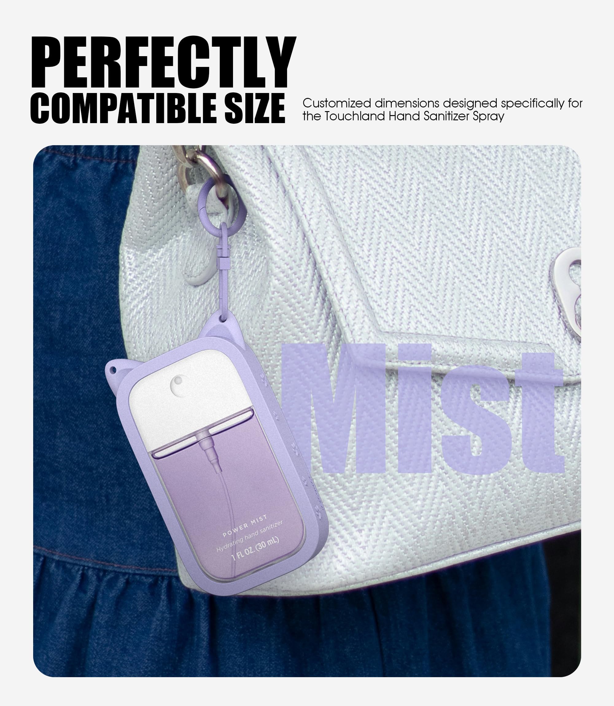 Touchland Hand Sanitizer Spray Case: Adorable Pet Ear Design(patent pending), Transform your Touchland hand sanitizer into a conversation starter! This spray case’s unique pet ear shape adds a playful touch, making it a cute accessory that stands out whether in your bag or in hand.(Only fit for touchland 30ml ver)