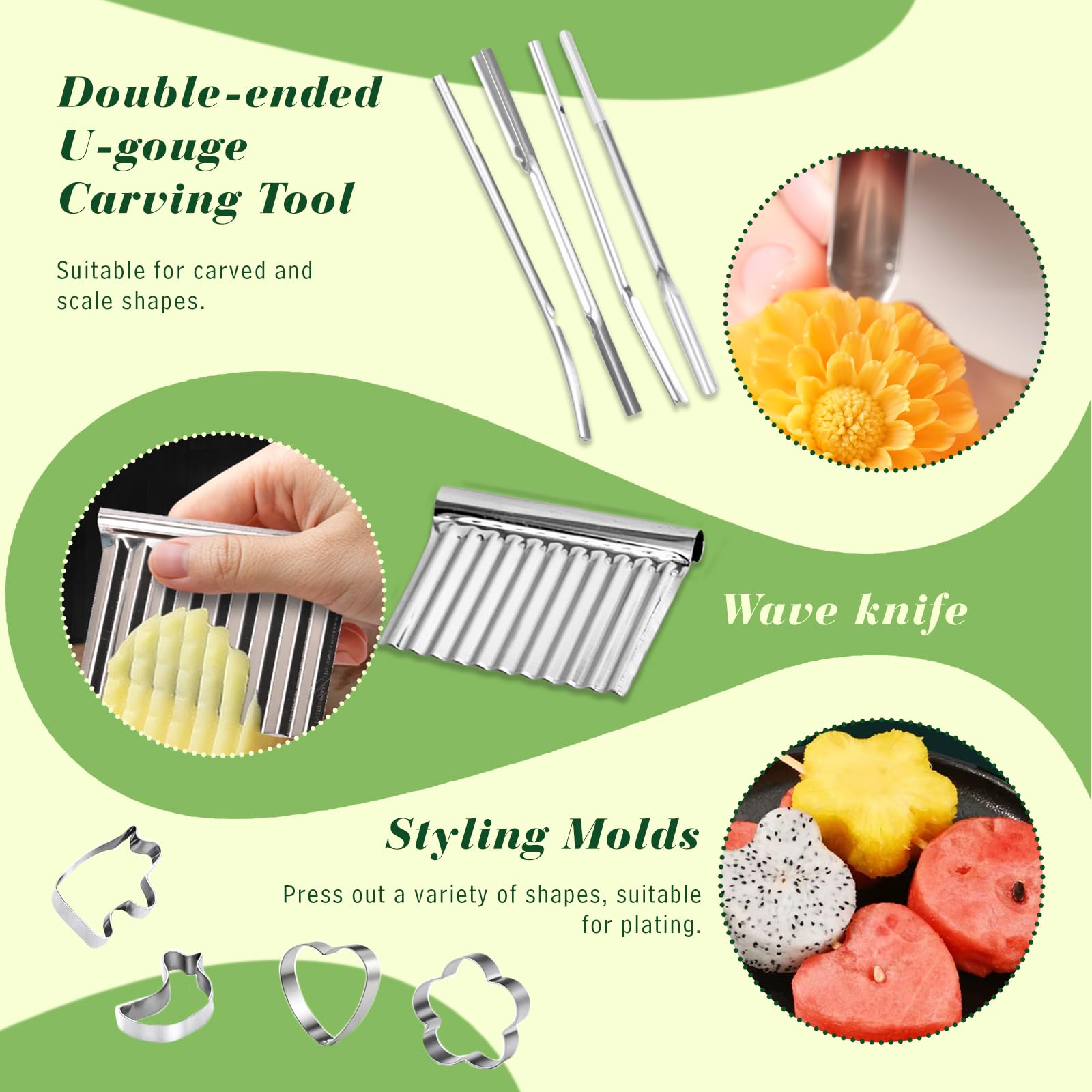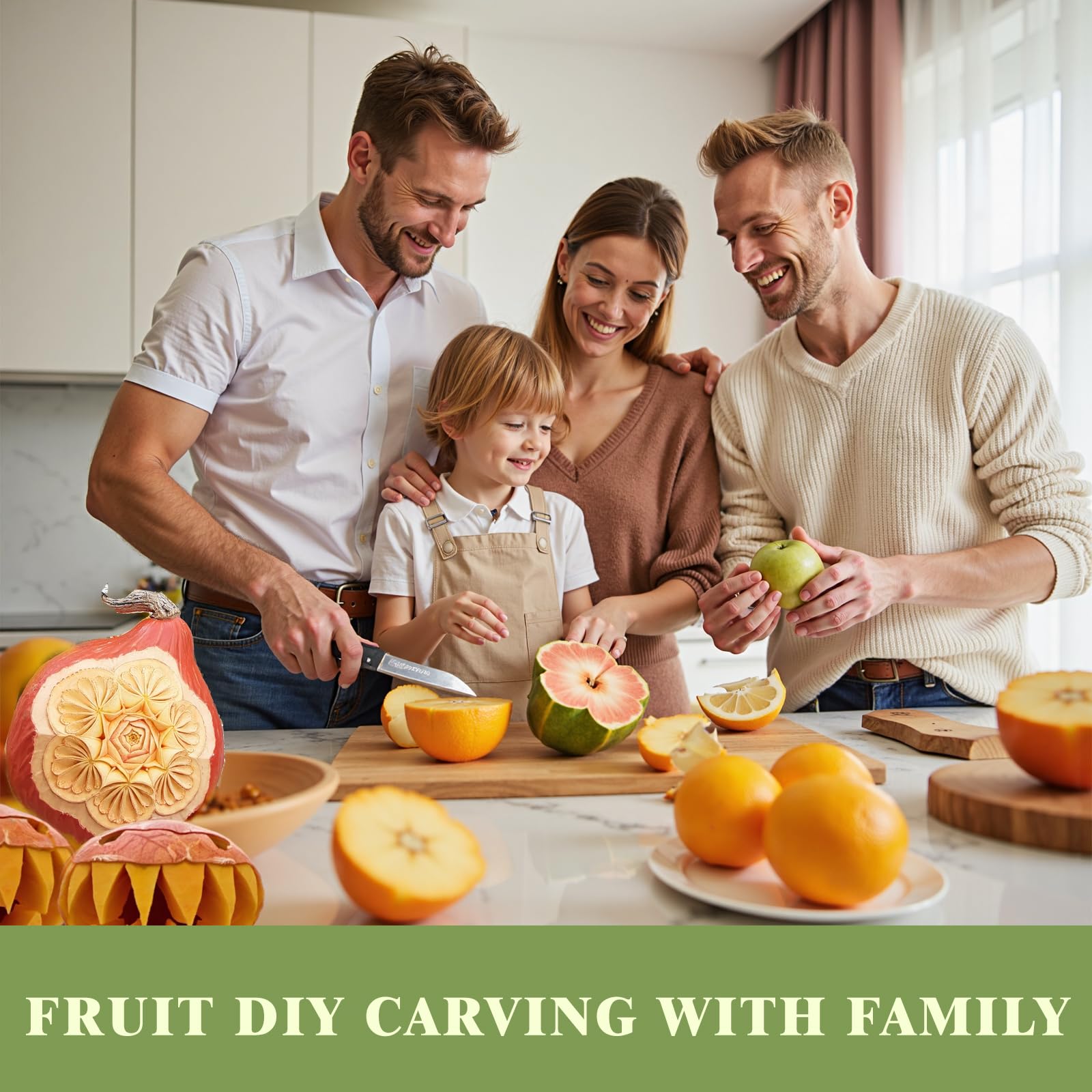 【Beginner-Friendly Visual Guides】Includes illustrated manuals with visual demos, helping novices effortlessly master each carving knife's techniques. Food-grade molds (stars, hearts, animals) enable stunning floral watermelons or bunny-shaped apples in minutes. Perfect for family bonding—create lasting memories while crafting nutritious fruit art together.