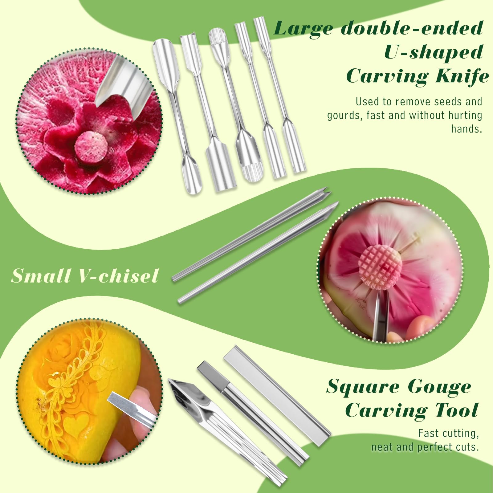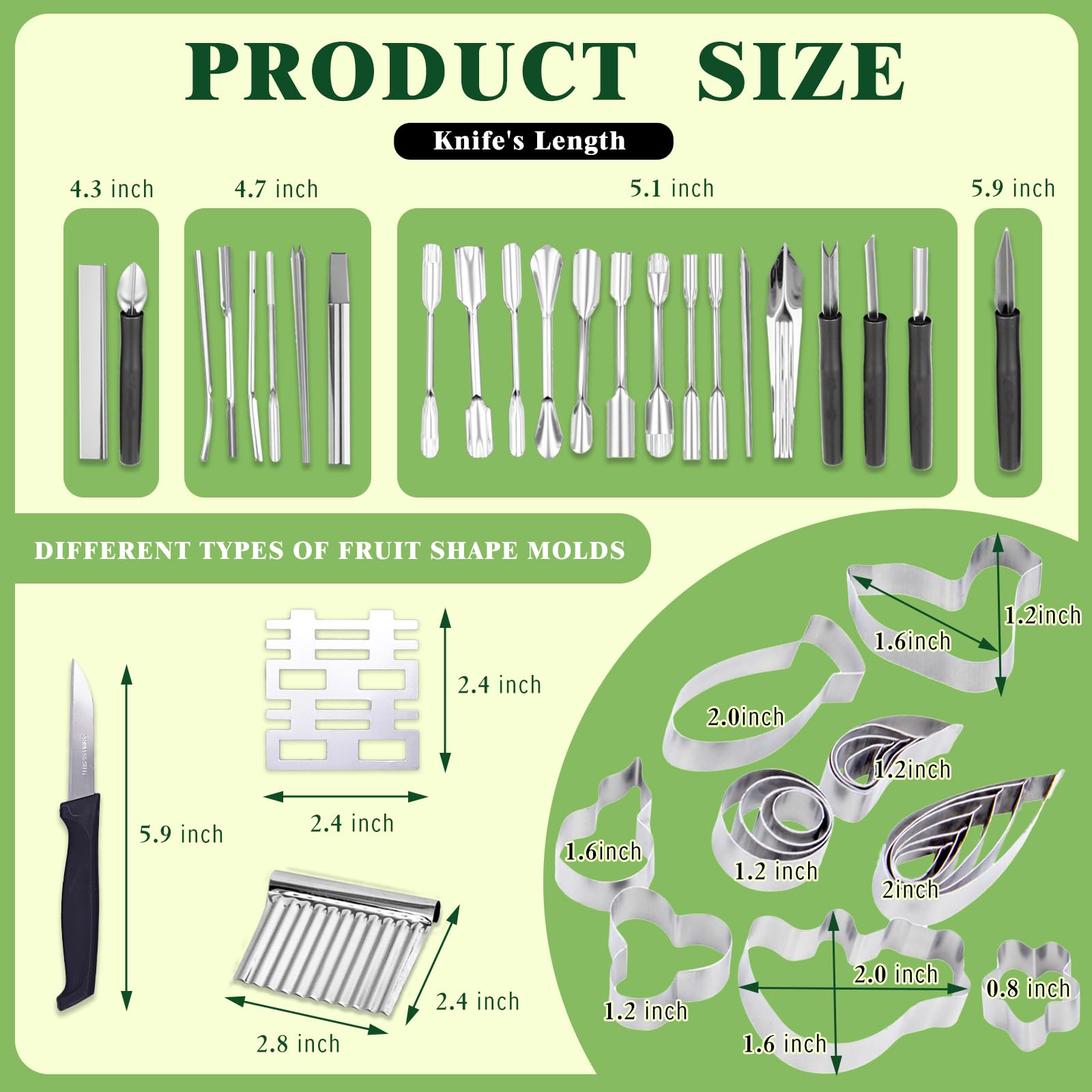 【Worry-Free 1 Year Guarantee】Rest assured with our premium-quality fruit carving tools backed by a full 1-year warranty. Should any product issues arise, simply contact us for hassle-free replacement of new products. Our dedicated customer service team is always ready to provide prompt and satisfactory solution.