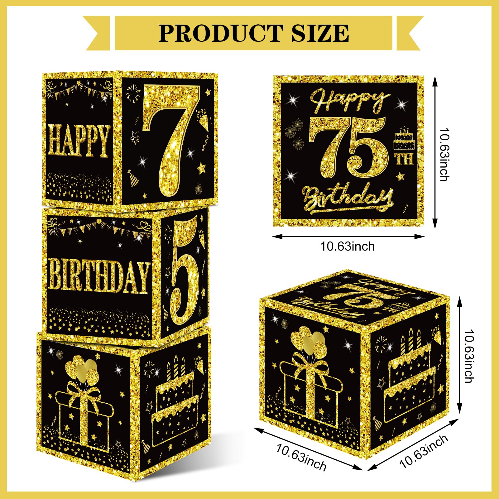 [You Will Receive] -3pcs black gold 75th birthday balloon boxes decorations, the size of each box is 10.62×10.62×10.62inch. This set of great 75th birthday party display decorations. (Note: This set of decorations does not include balloons).