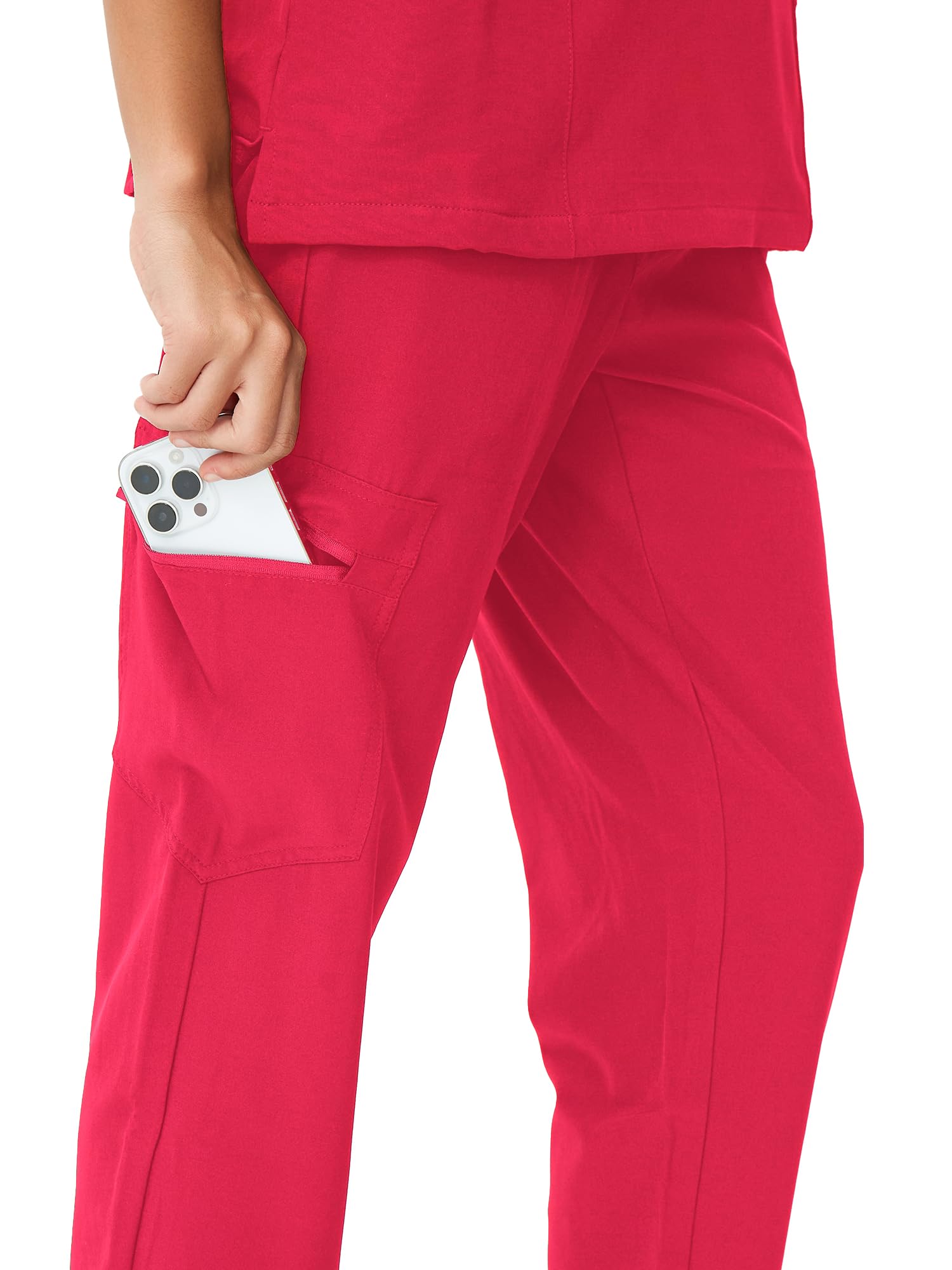 Multi-functional Pocket Design - 5 pockets: 2 front hip pockets, 1 side zippered pocket, 2 back patch pockets, ideal for healthcare professionals