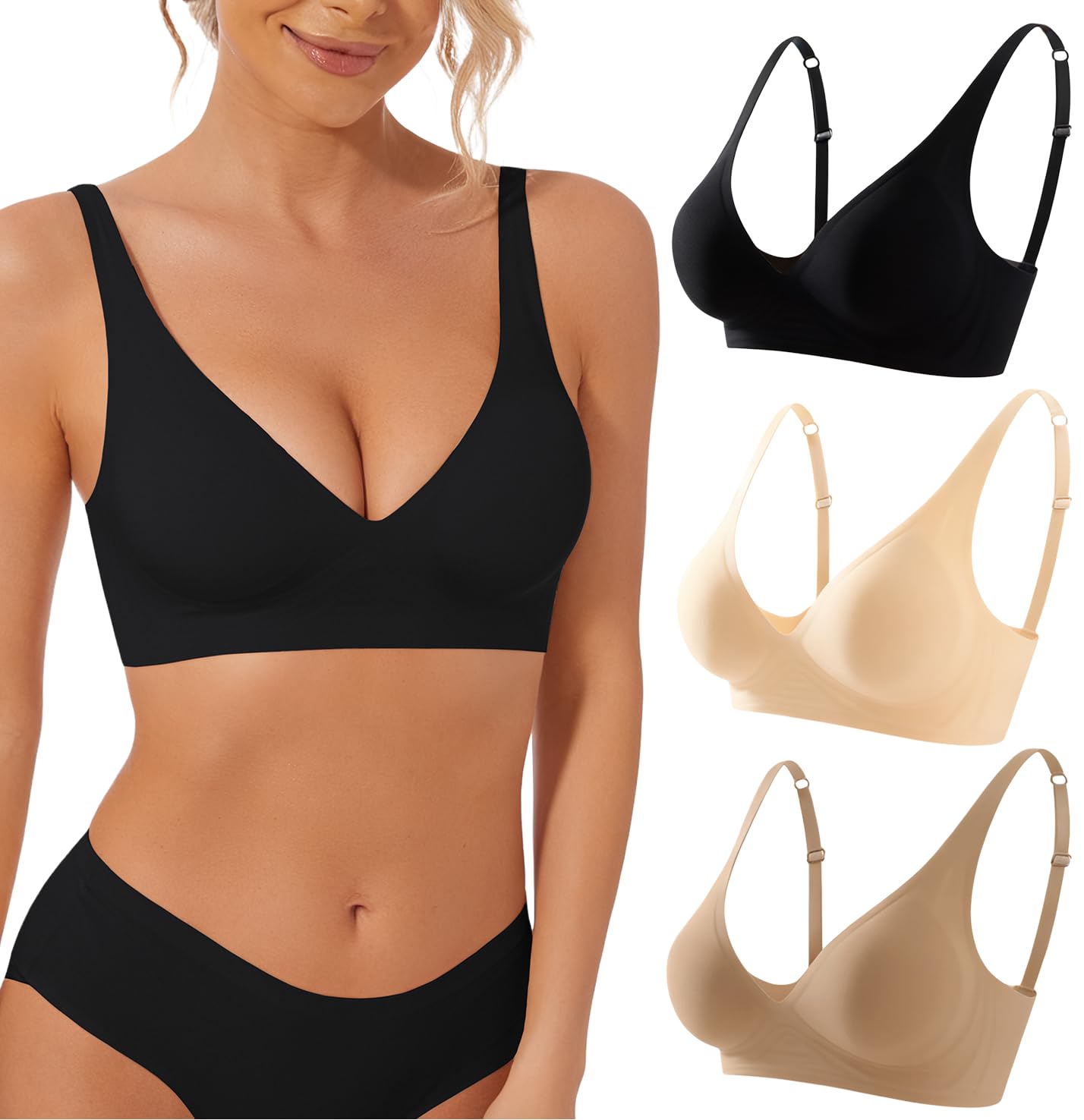 [Versatile Occasion & All Match - Bralettes for Women]: This wireless bra is an ideal choice for date, prom, party, home and casual daily match; wearing our v neck bra under top, t-shirt or dress, enjoy a seamless look that will complement any outfit