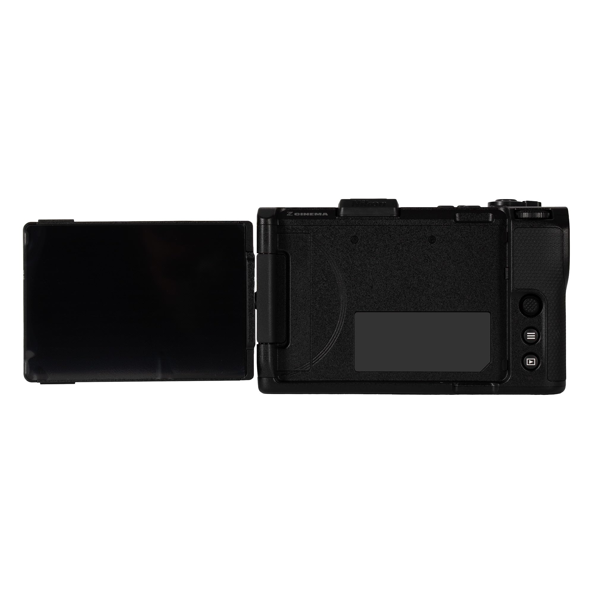 A bright 4 inch DCI-P3 touchscreen offers 1000 nits of clarity and auto-rotates for vertical shooting. Filmmaker-oriented controls include a stills/video switch, Fn buttons, waveform, zebras, touch AF, and shutter-angle selection from 5.6 degrees–360 degrees. CFexpress Type-B and microSD proxy recording, USB-C power, and a compact form factor support versatile production rigs.