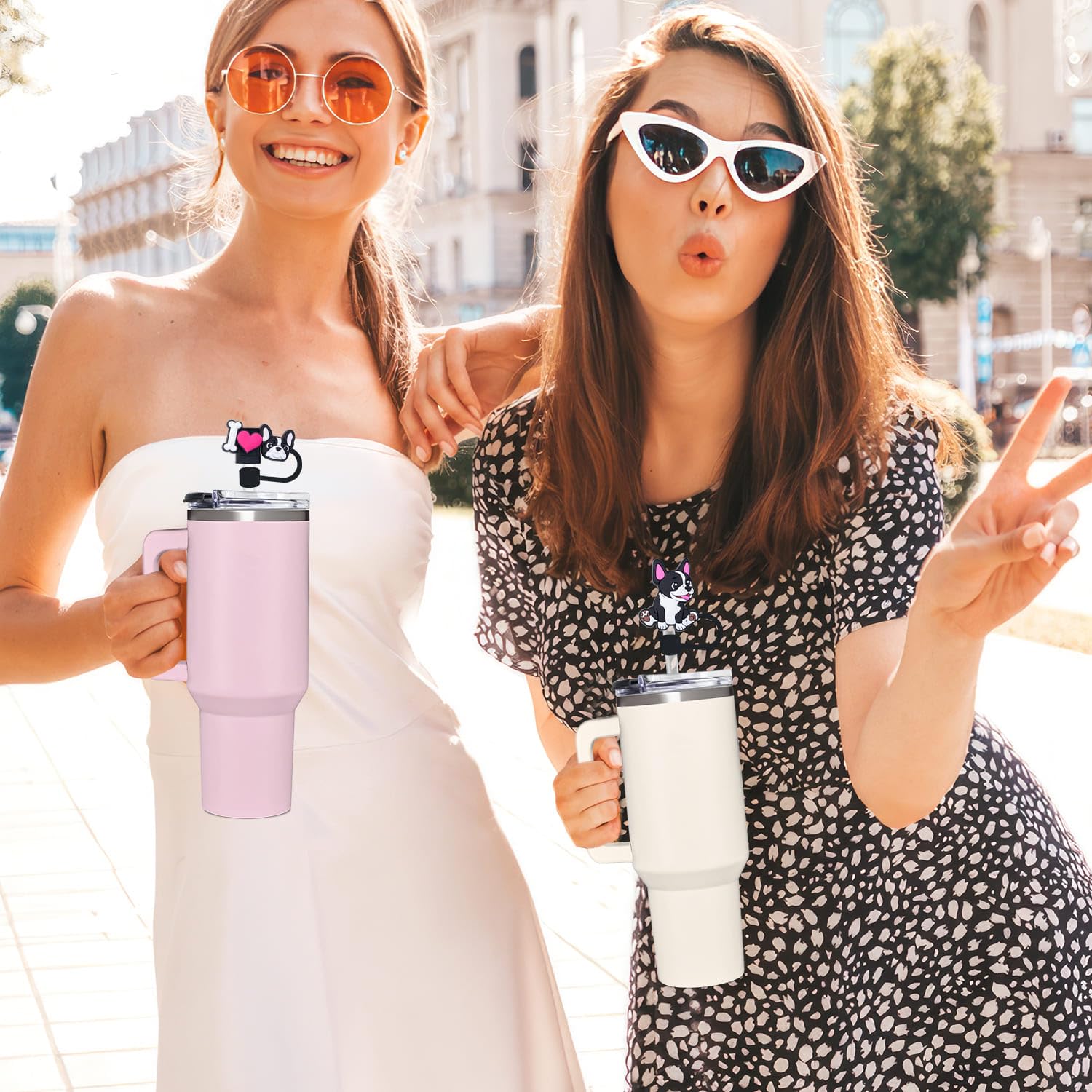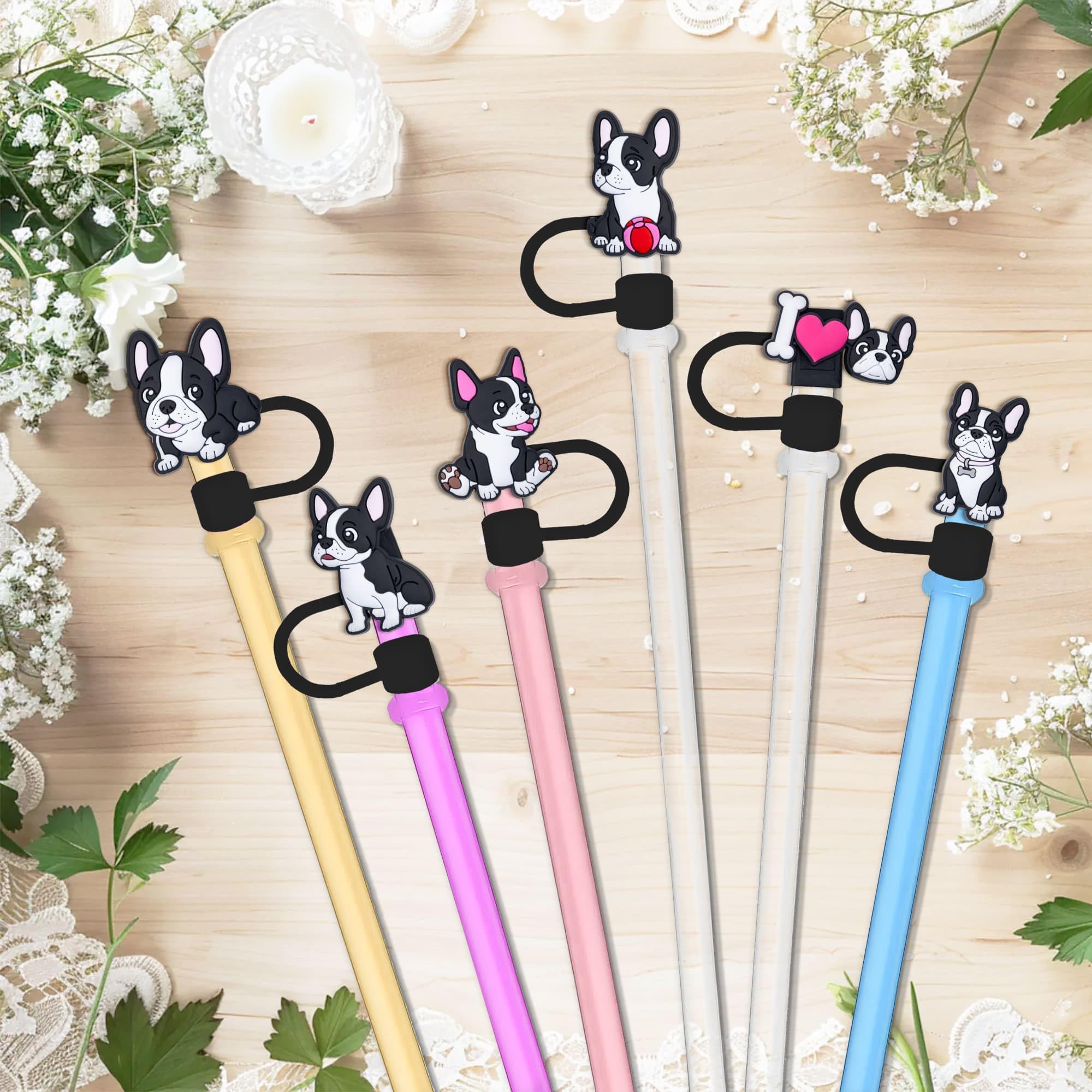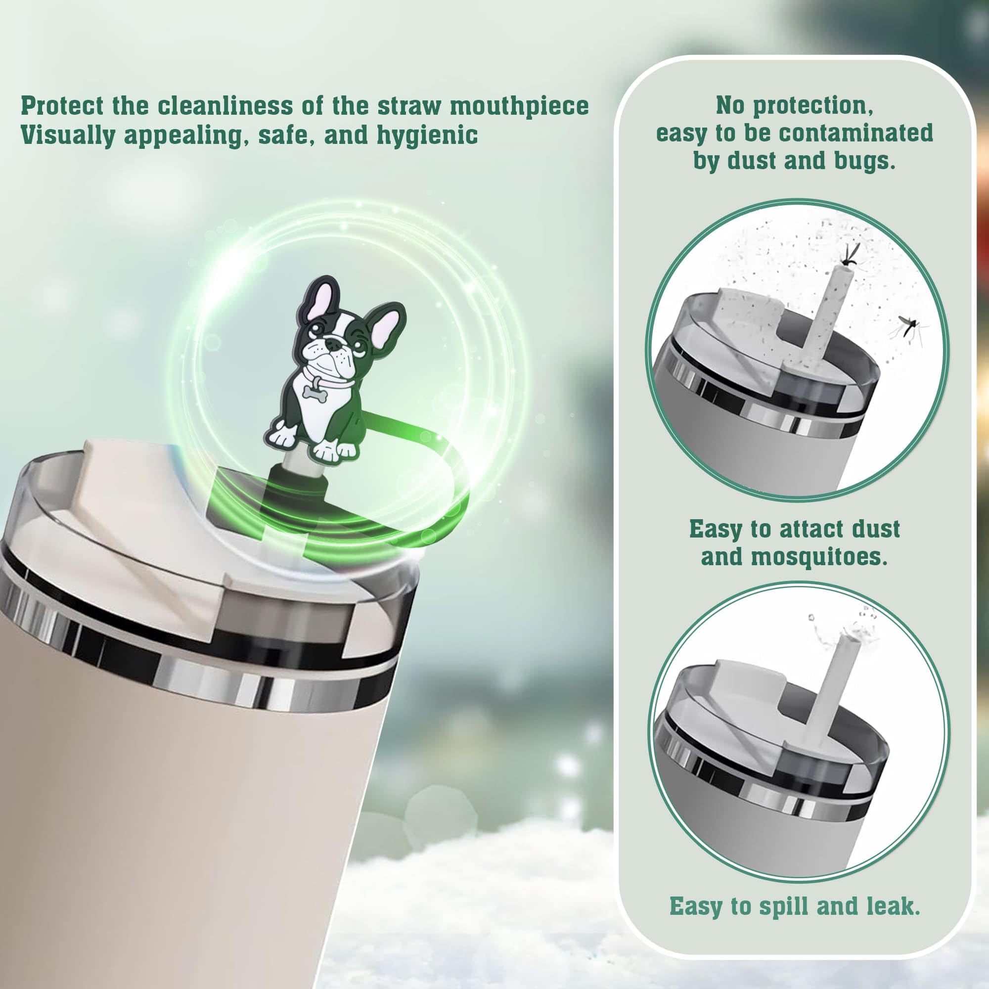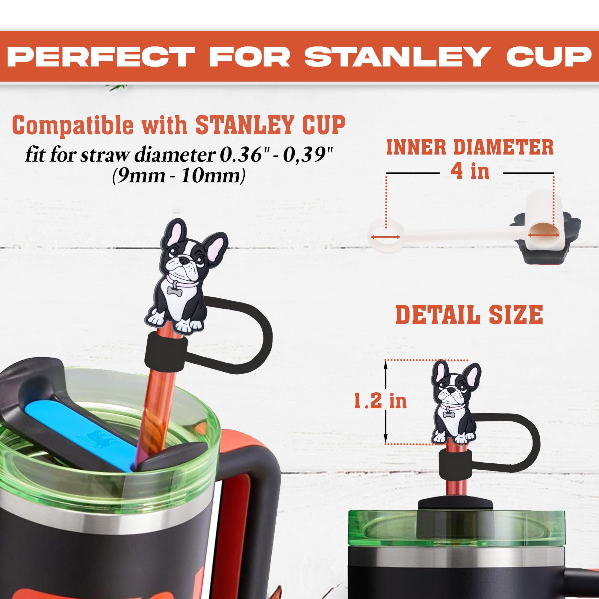UNIVERSAL FIT FOR 10MM(0.4IN) STRAWS: Compatible with Stanley 30 & 40oz tumbler straws and other 10mm (0.4in) diameter straws, these toppers fit securely to prevent spills and keep your drink clean. Boston terrier lovers will appreciate the cute and functional design that brightens up any beverage.