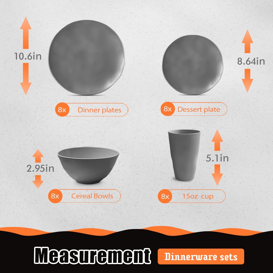 PACKAGE INCLUDE: This wheat straw dinnerware sets include 32 pieces in total. Easy to match your existing flatware.