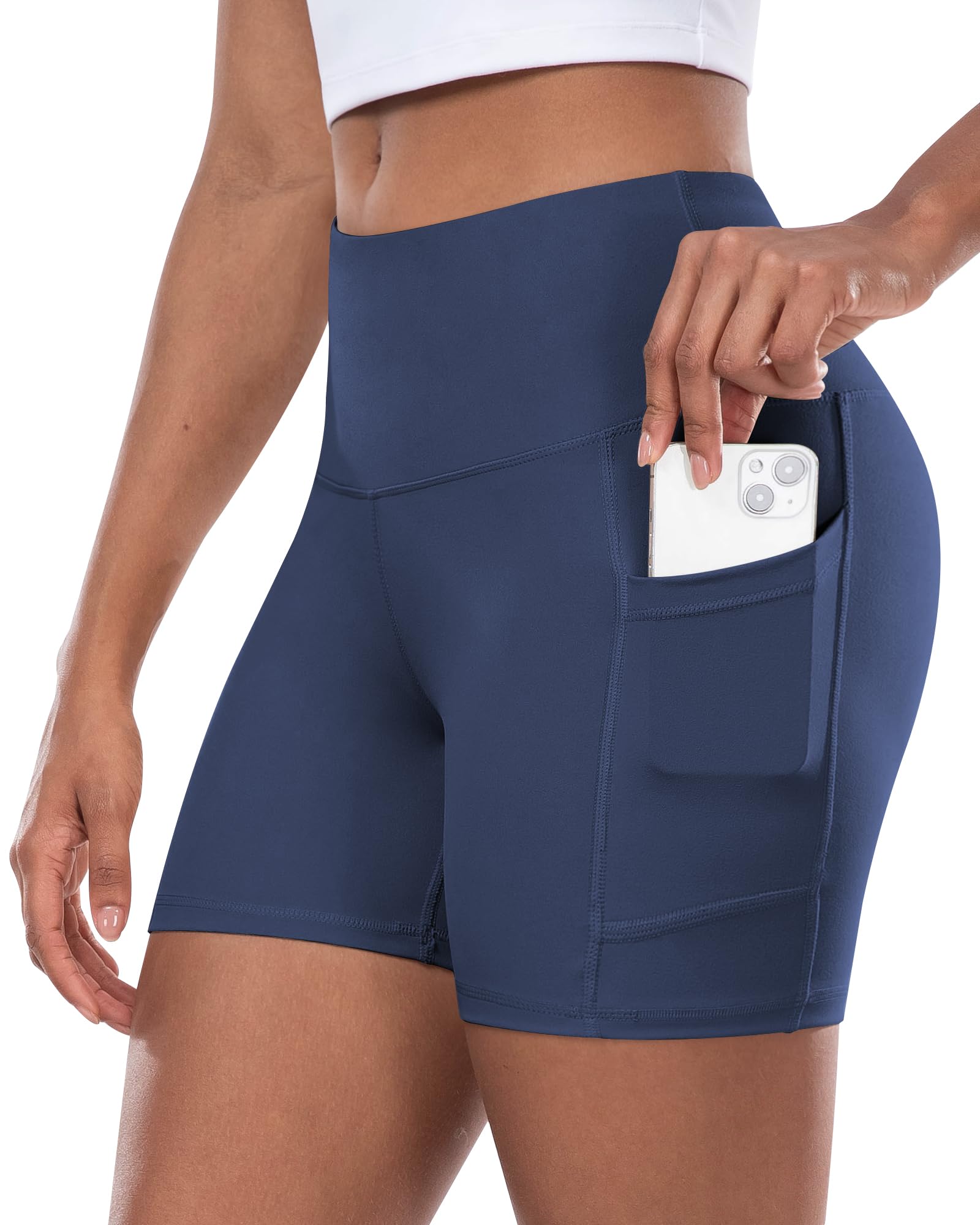 ✅ 2 OUTER POCKETS & 1 HIDDEN POCKET - The biker shorts have large capacity pockets on both sides and a hidden pocket at the waist to use. The deep enough pockets can meet the storage needs of life and sports, such as cell phones, keys, wallets and cards, making it easier for users to carry essentials during sports.