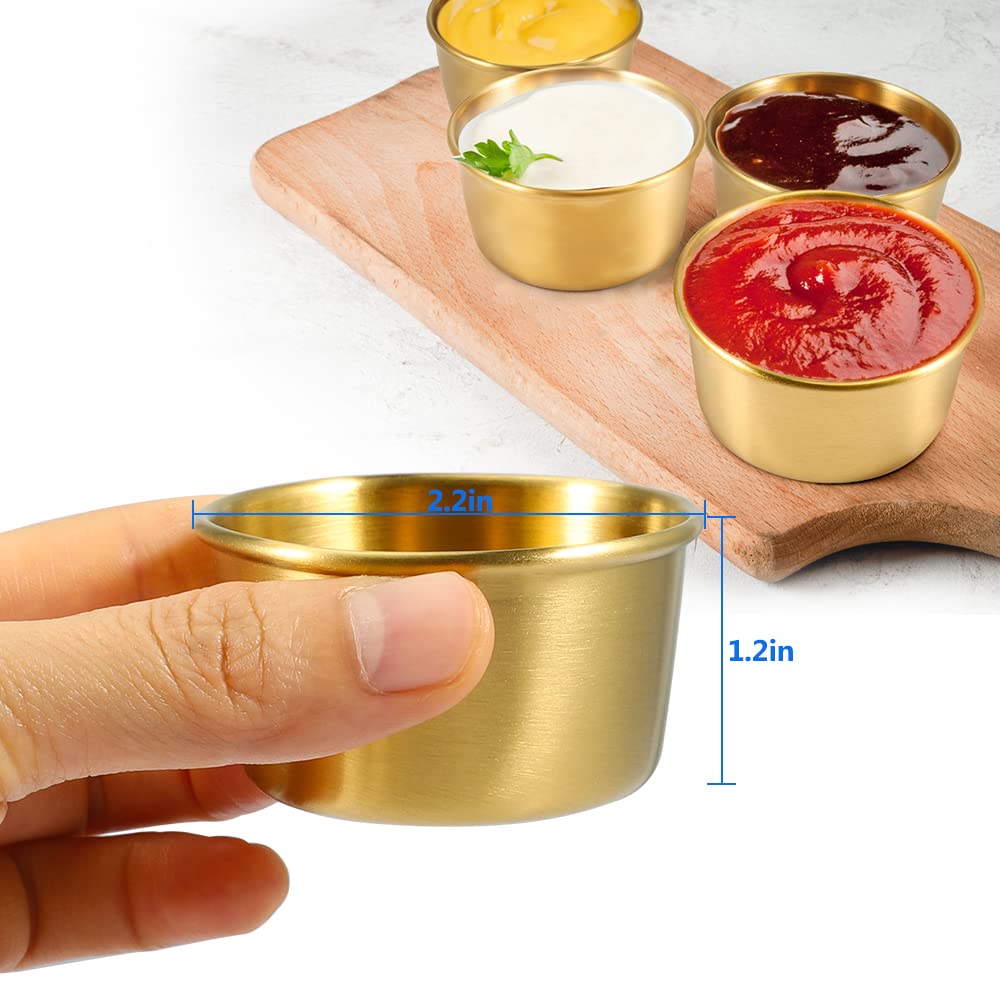 Package include 12 x 60ml 0.25 fl oz Amytalk Golden Ramekin Dipping Sauce Cup