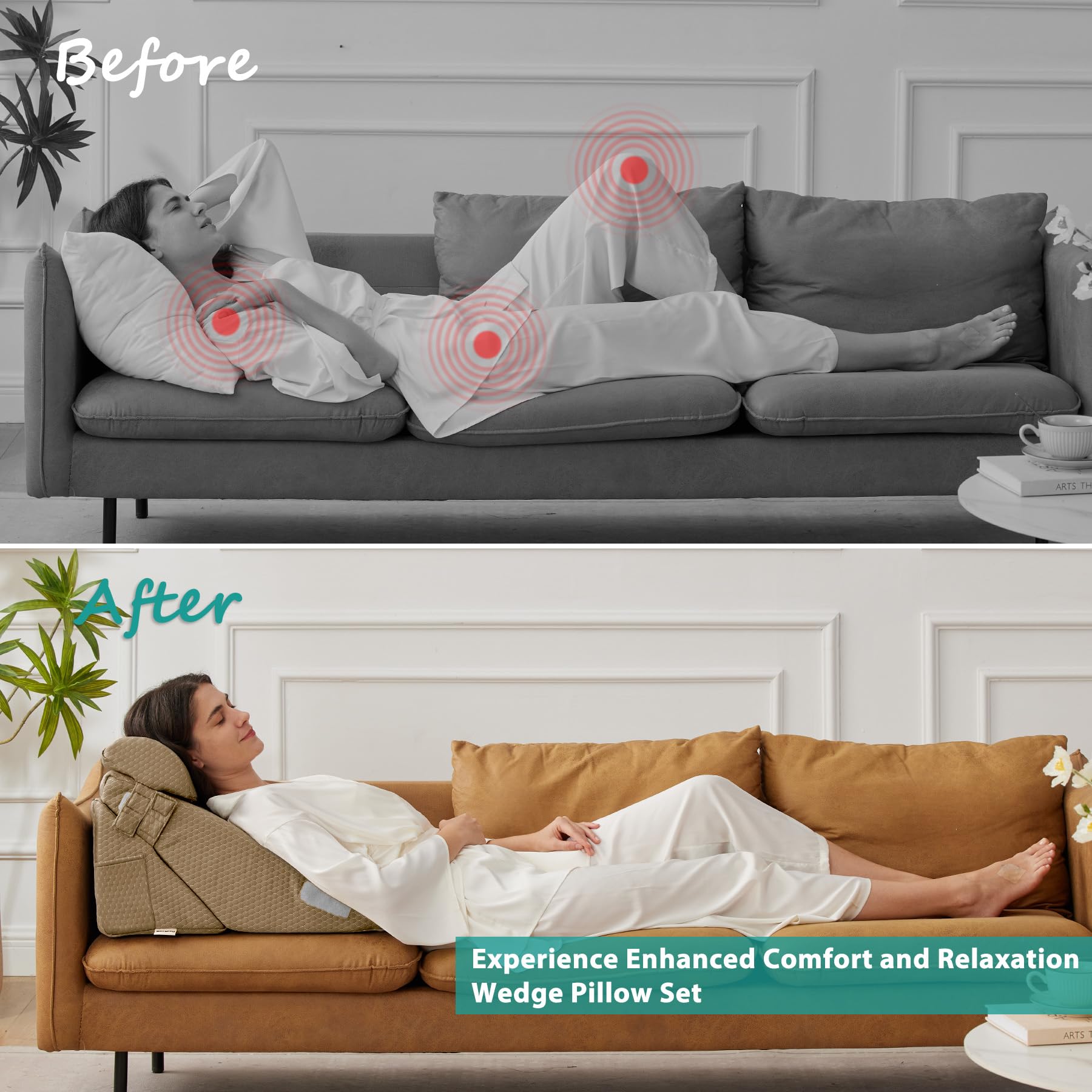 Enhanced Health Support: Designed for improved blood flow, breathing, and reduced snoring, the ergonomic wedge pillow system aid recovery post-surgery, alleviate knee, back and leg pain.