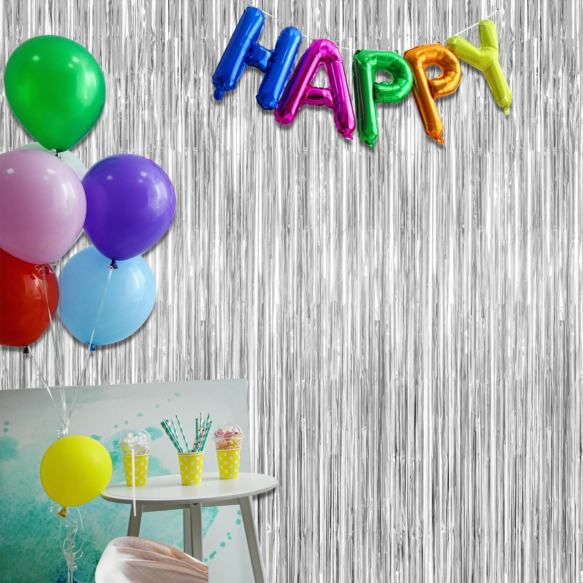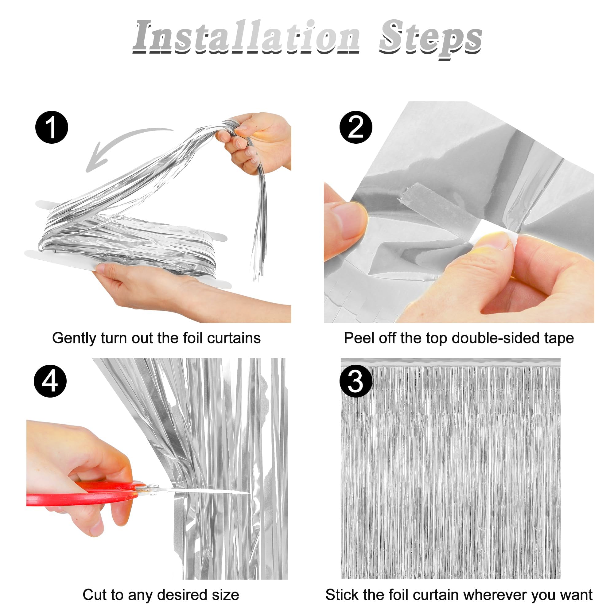 Easy to Install: Each silver curtain comes with an adhesive strip at the top. Simply peel off the backing and stick the streamer backdrop to any smooth surface for a quick and hassle-free setup.