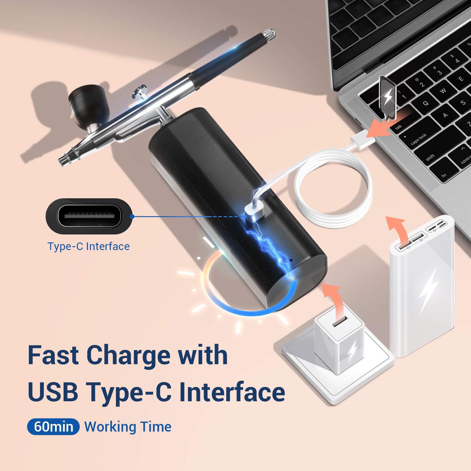 【Two Connection Modes】 A braided air hose is provided in our cordless airbrush kit. Except connecting our portable compressor with the airbrush gun directly, you can also connect our compressor with the airbrush body through the air hose. You will enjoy the great convenience when you are working