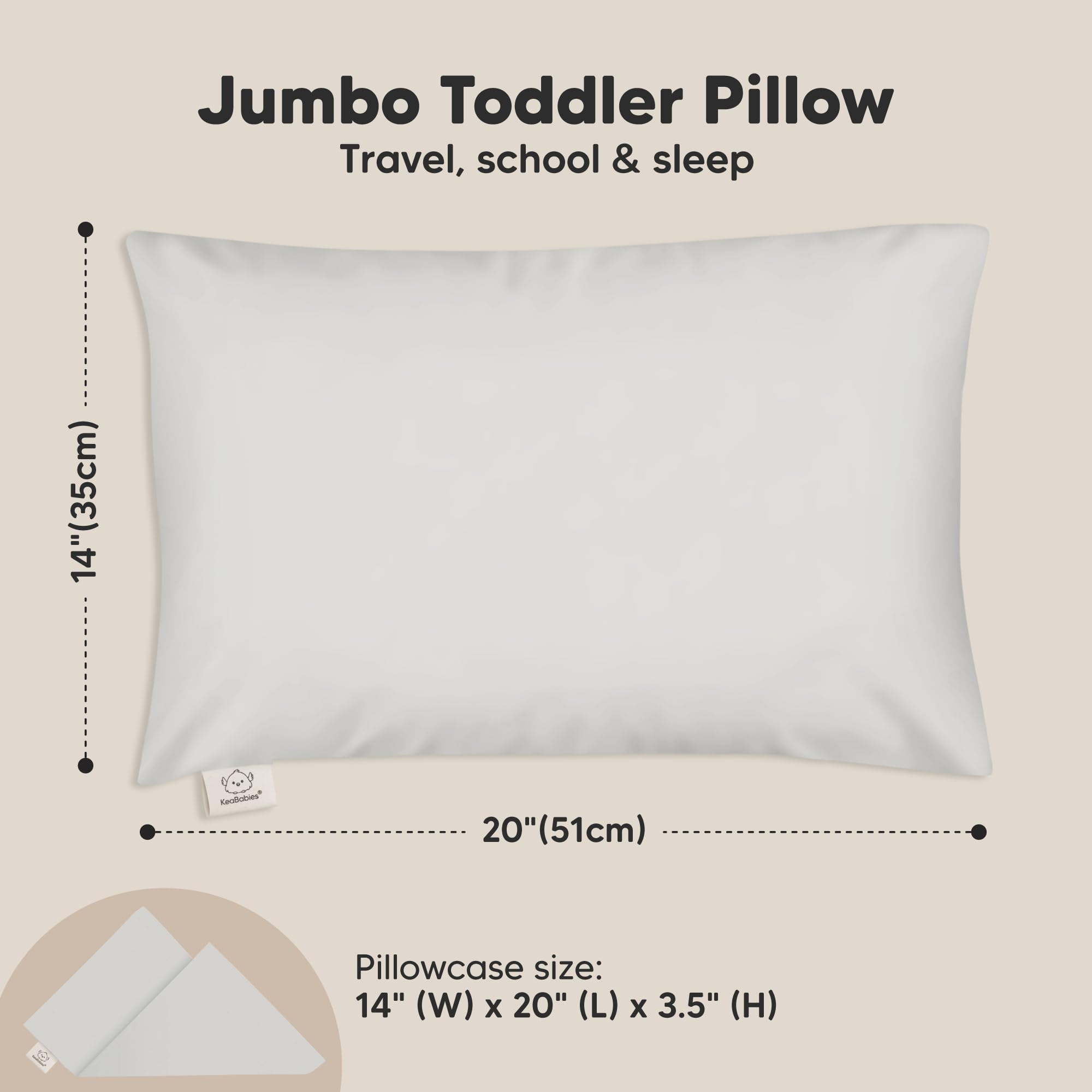 Ergonomically Designed – KeaBabies Jumbo Toddler Pillow 14x20, offers ergonomic support for healthy spinal alignment and all-night comfort. Note: Simply cold wash and tumble dry low to restore its fluffiness after opening from vacuum package.