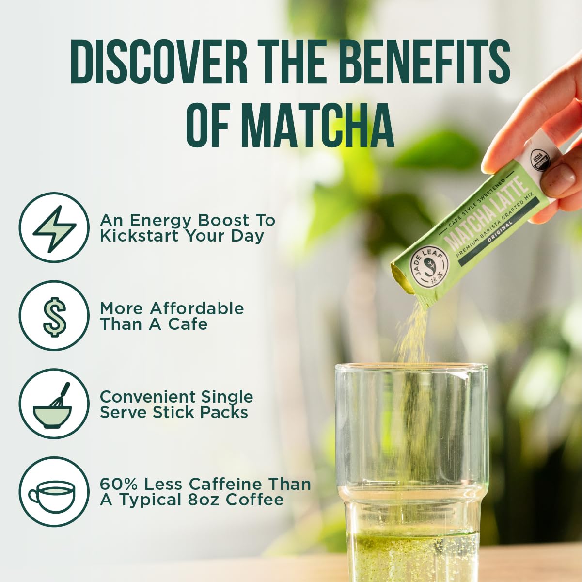 CAFFEINE: Matcha contains less caffeine than a standard 8oz cup of coffee while still giving you an energy boost to kick-start your day.