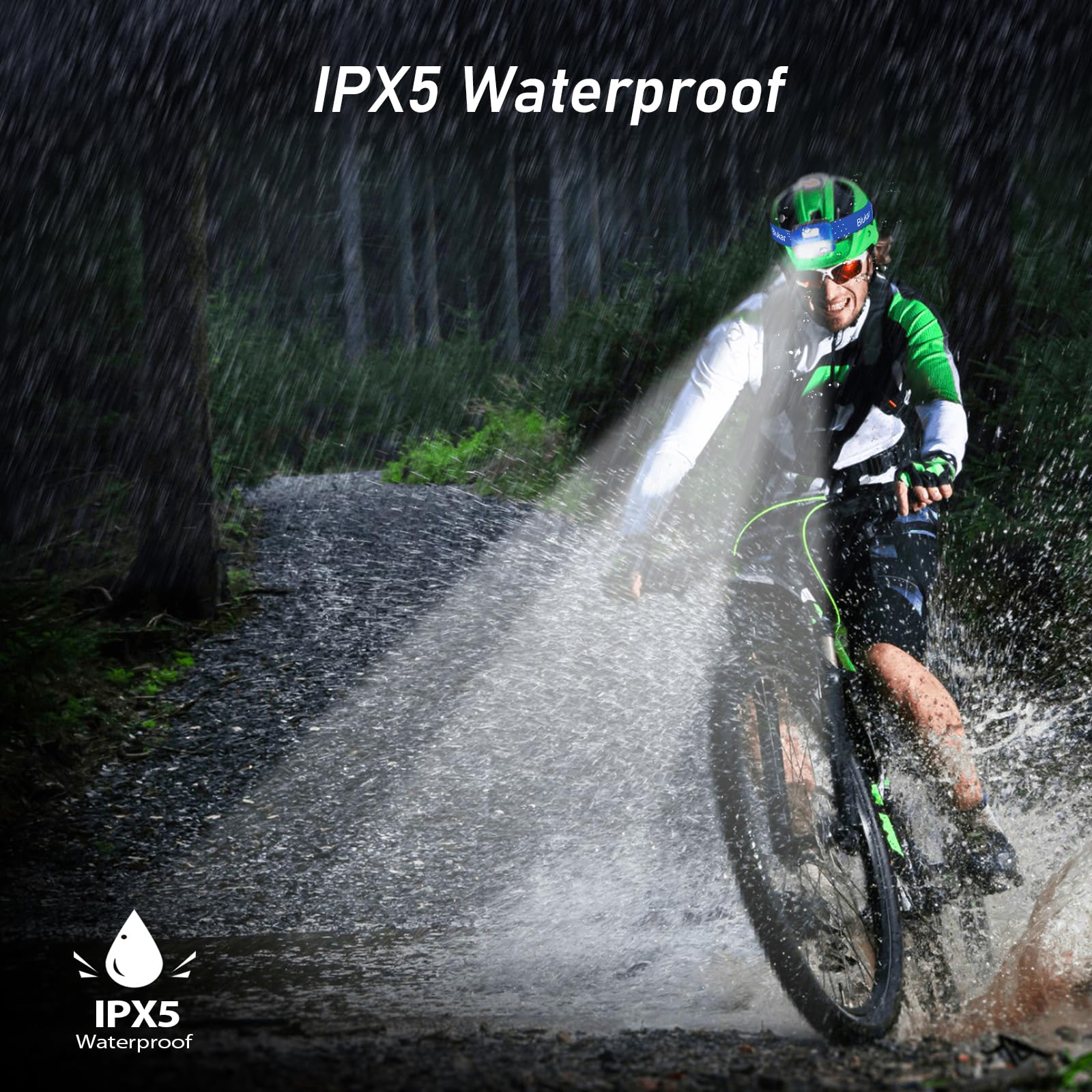【Rechargeable and IPX5 Waterproof】Built-in 1200mAh large-capacity battery, easily rechargeable via USB C. The powerful headlamp can support long time outdoor activities when fully charged, giving you longer lighting time and easier charging experience, (USB C cable included). This headlamp also has an IPX5 waterproof rating, making it safe to use in rainy or snowy weather, indoors or outdoors. It's an ideal choice for outdoor enthusiasts.