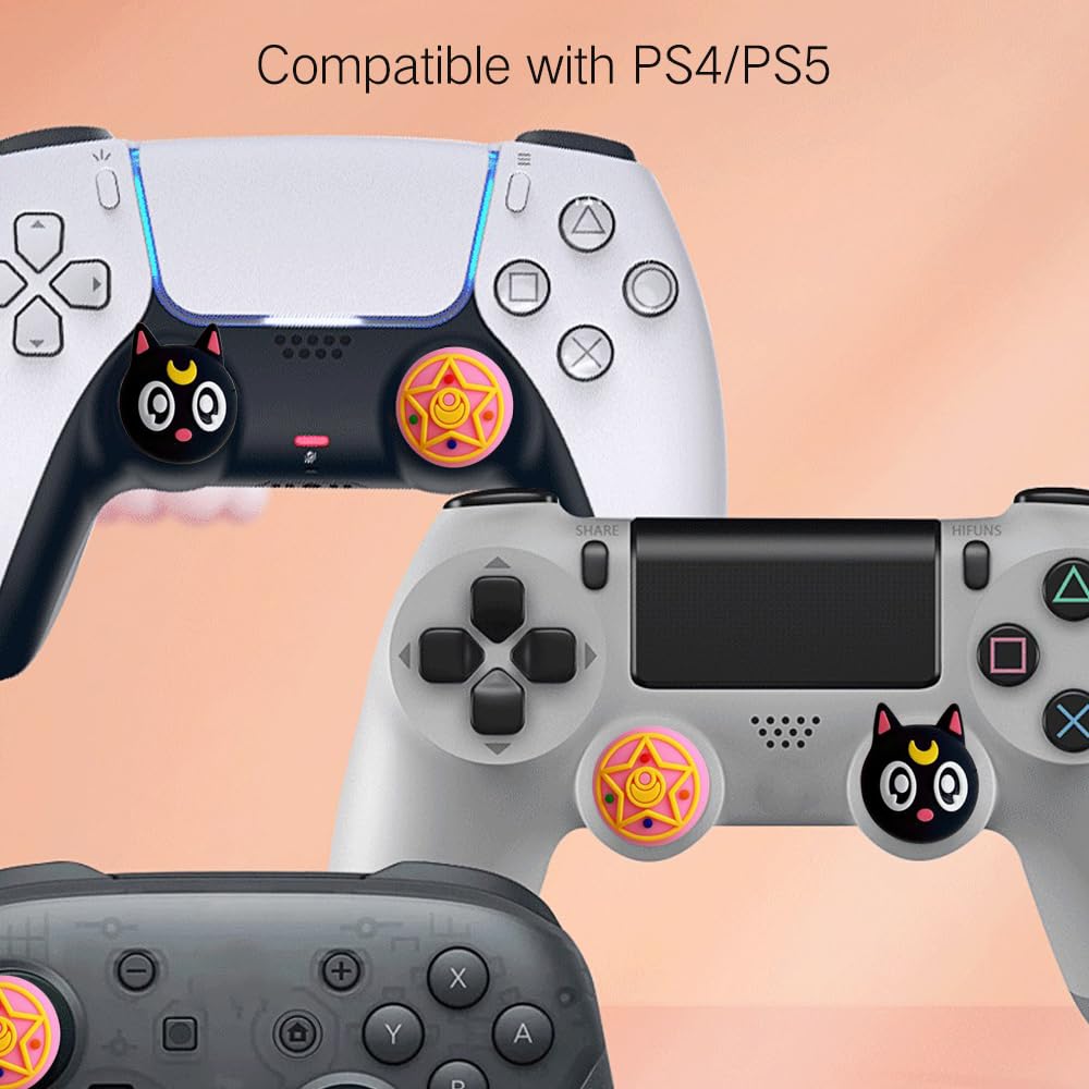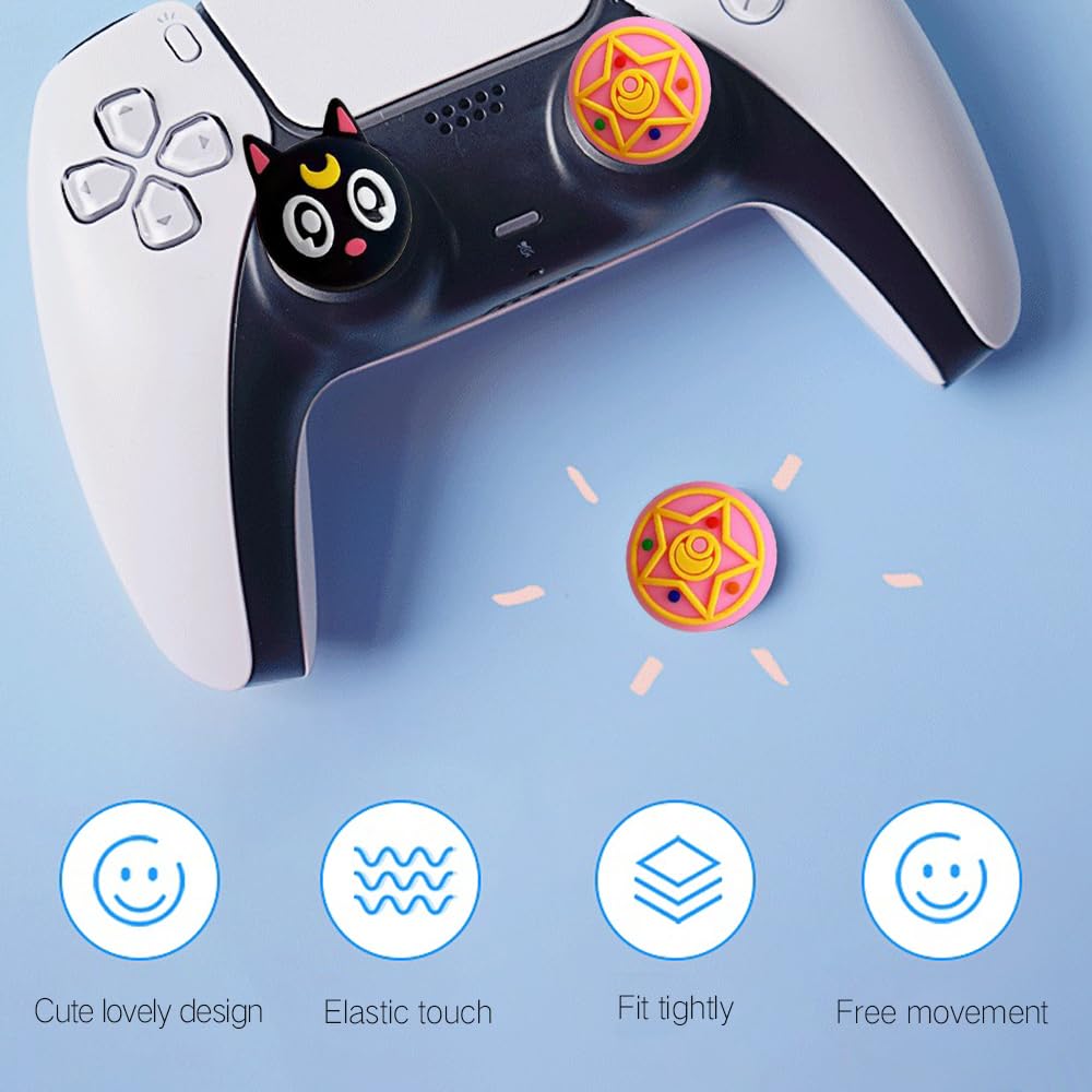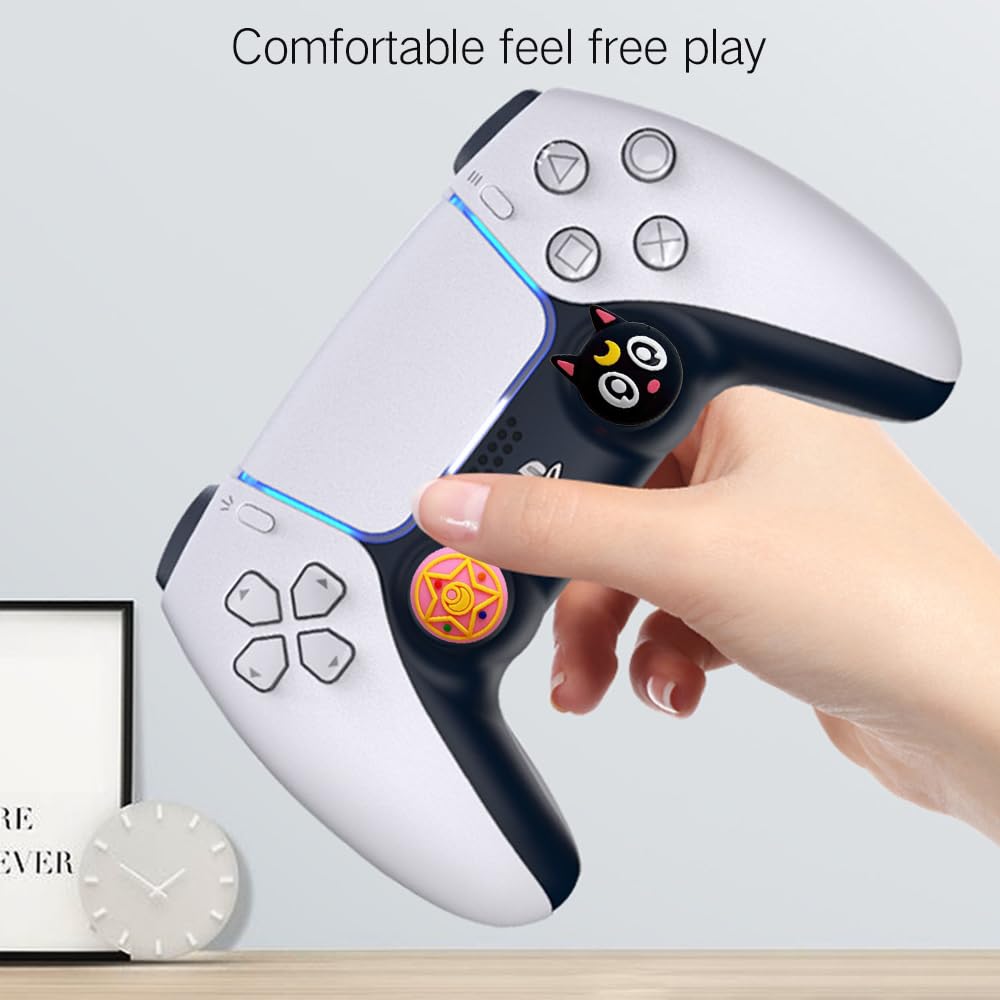 PERFECTSIGHT Cute Thumb Grip Caps for PS5/PS4/Xbox One (Series X, S)/Nintendo Pro Controller, Anime Thumbsticks Joystick Cap, 3D Kawaii Soft Skin Silicone Analog Stick Button Covers, Joystick Grip Button Caps Cute Thumb Grip Caps Compatible with PS5/PS4/Xbox One (Series X, S)/Nintendo Pro Controller! Enjoy more responsive and comfortable with gaming experience with cute ghost thumb stick grips. Protect your joycon sticks from everyday wear and tear while getting better control and accuracy during game play. Ideal for switch gamer lovers. Features: Cute lovely design, eye-catching decoration-- Cute animal theme design makes PS5/PS4/Xbox One/360/NS PRO Controller more eye-catching. Adorable spooky designs with 4 cute cartton thumb grips ! Perfect non-slip design -- Increase the friction between finger and controller. Prevent your fingers from slipping and provide more accuracy and sensitivity. Easy Installation -- Just turn the grips inside-out and pop over the sticks. Edeal Gift -- Treat a fellow gamer or loved one with a cute spooky surprise, or treat yourself! Exquisite packing make it a great accessory gift for Swtich fans. Specification: Material: Silicone Compatible models: PS5/PS4/Xbox One/360/NS PRO Controller Package include: 4* Cute Thumb Grips Caps