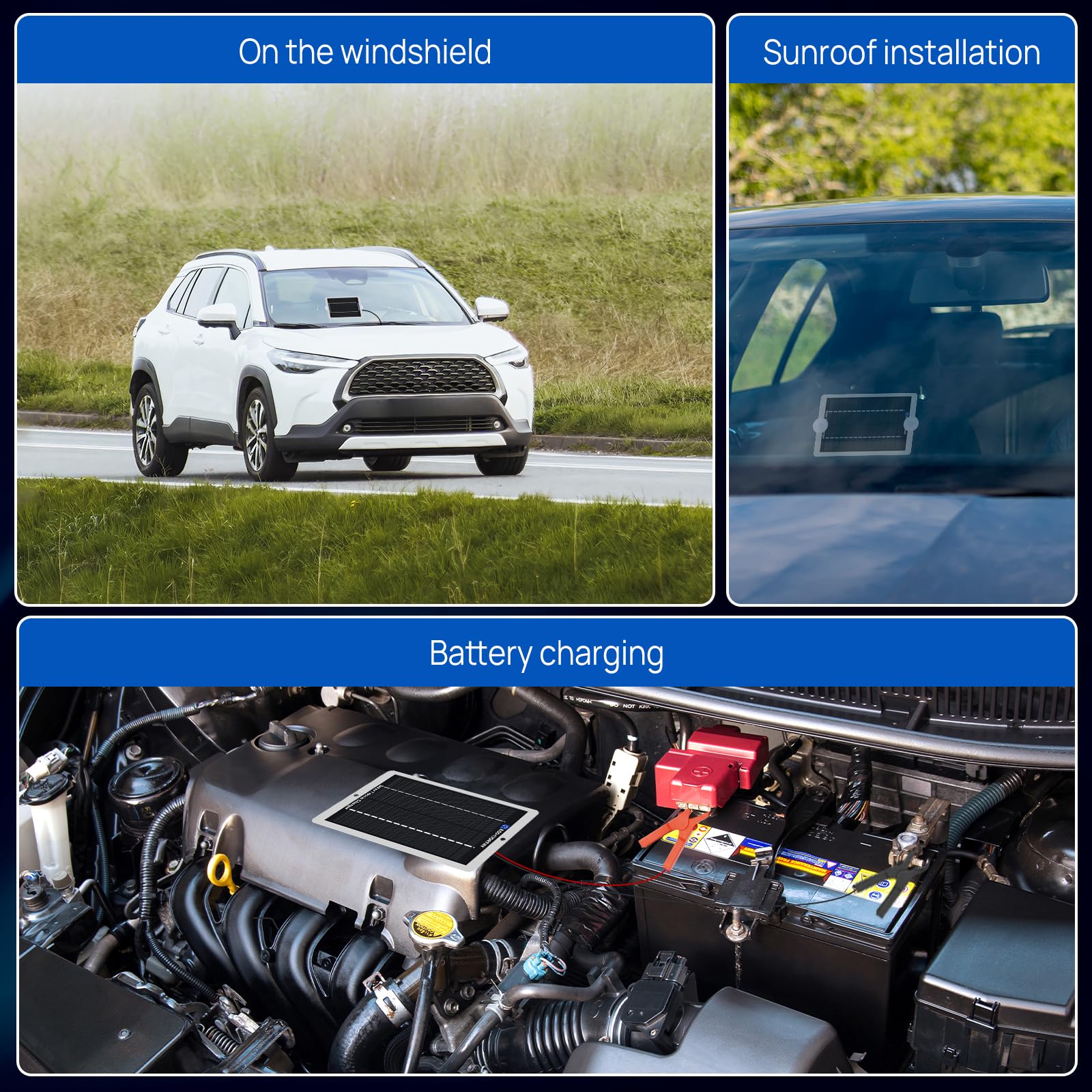 [More Robust and Durable] This solar battery maintainer is covered with ultra clear PV glass which is more efficient, and also with Durable ABS plastic housing which makes this solar panels charger more stronger.