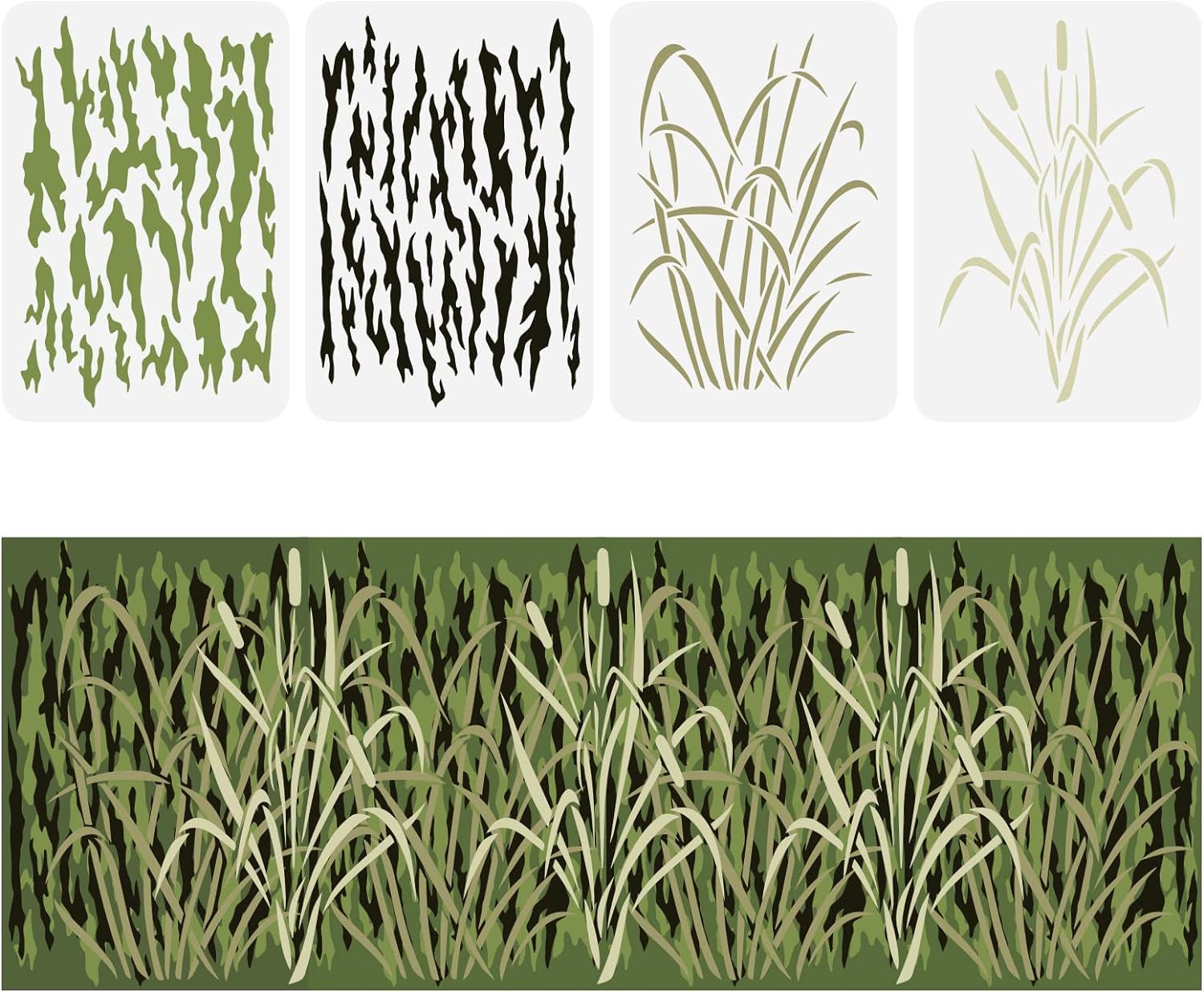 11"x14" in size. 4 stencils included in kit