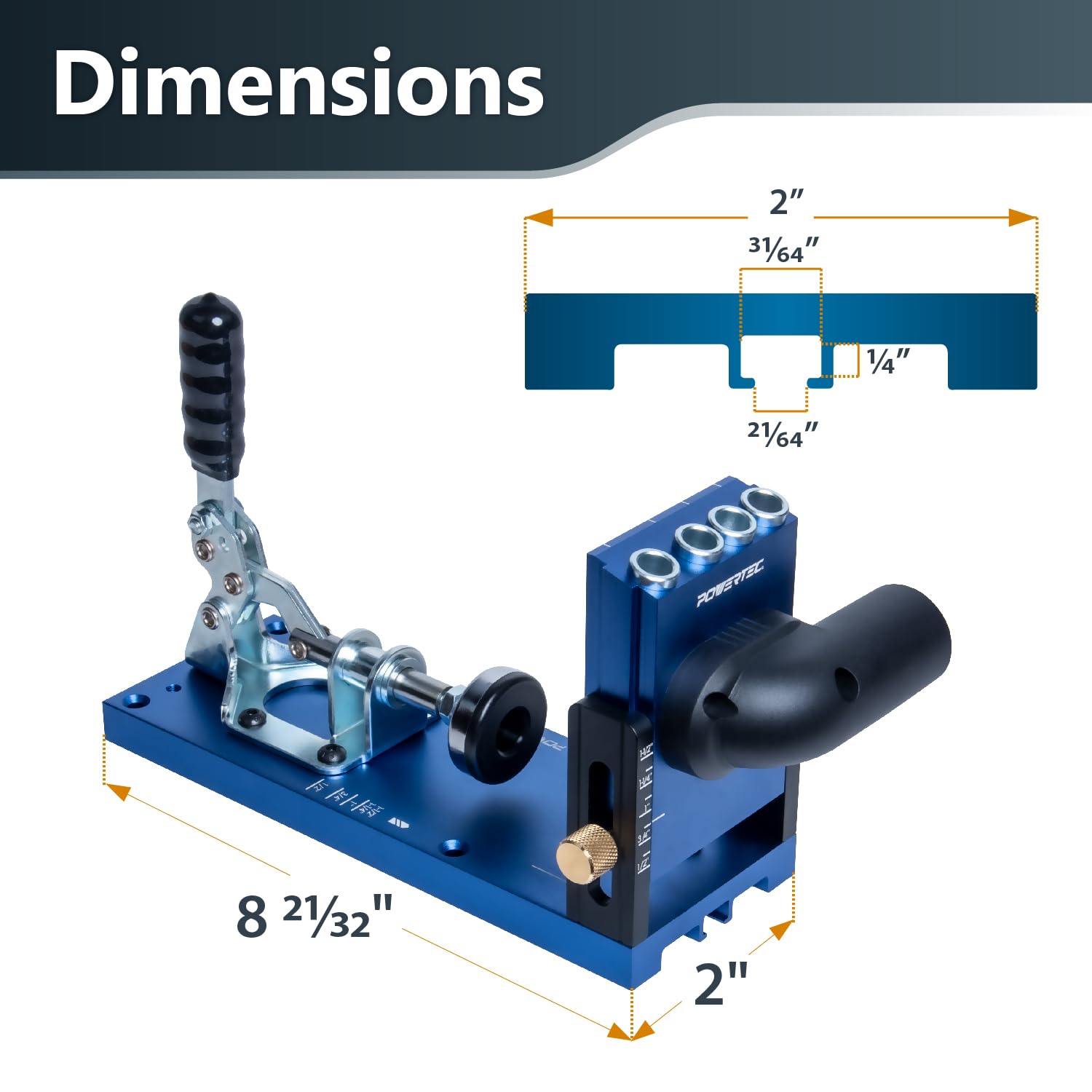 PREMIUM BUILD: The jig and base feature a blue, heavy duty aluminum body for long term durability. The drill sleeves are made to withstand the wear and tear commonly associated with drilling, dust collection and woodworking, and are positioned for accuracy and consistency time after time on the job
