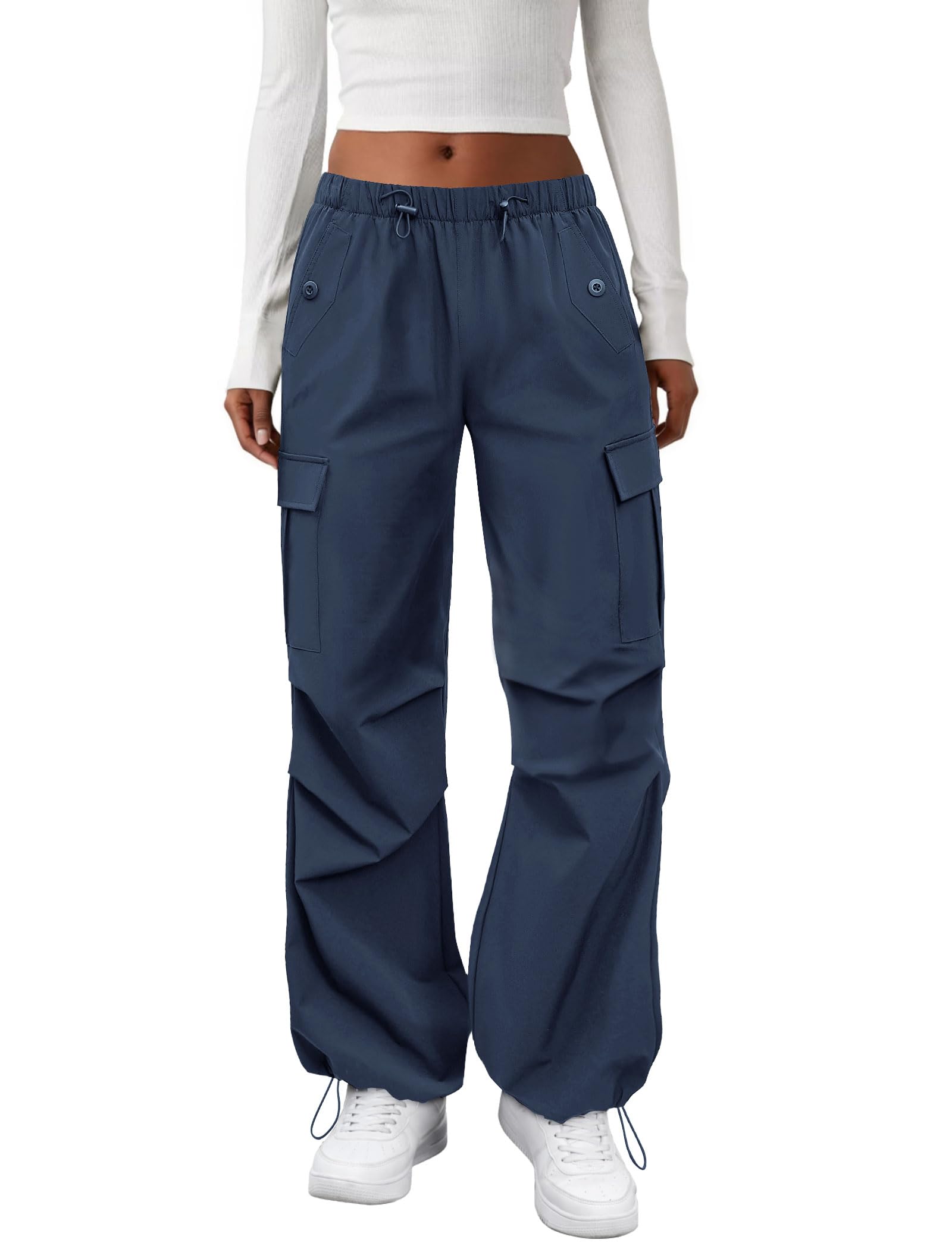 LIGHTWEIGHT BUT DURABLE:These women’s cargo pants are made of soft, parachute-inspired fabric that’s ultra-light.The airy and baggy style is part of the Y2K design, perfect for creating a cool, edgy streetwear vibe—especially in warmer weather