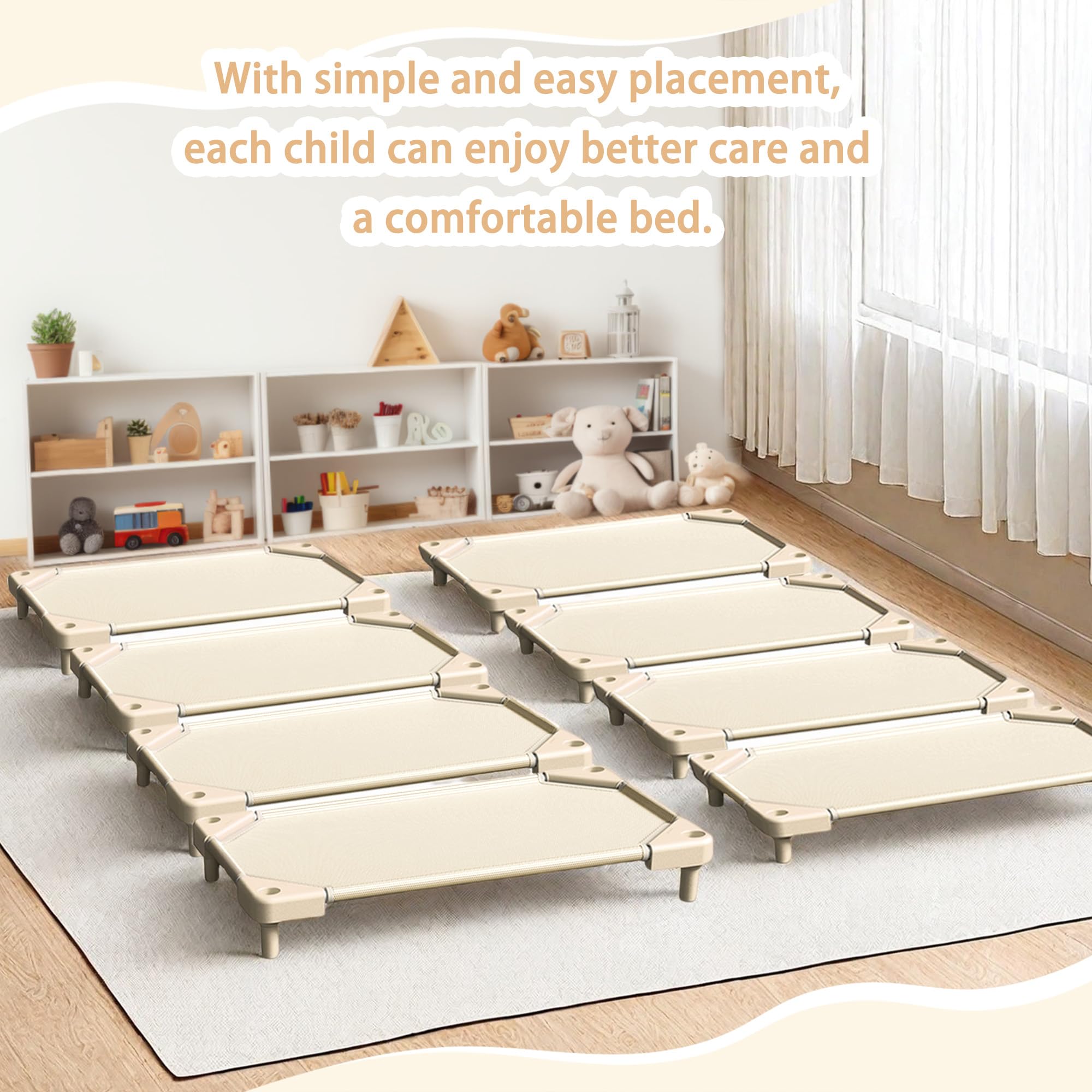 【Easy to Clean】Unlike the commonly used Oxford fabric, our daycare cots feature high-quality sand mesh fabric as the support surface, offering superior stain and wear resistance. Any soiled areas can be easily wiped clean without the need for disassembly. The unique mesh design ensures quick drying. This makes our cots ideal for busy classrooms or home daycare settings, significantly reducing maintenance costs.