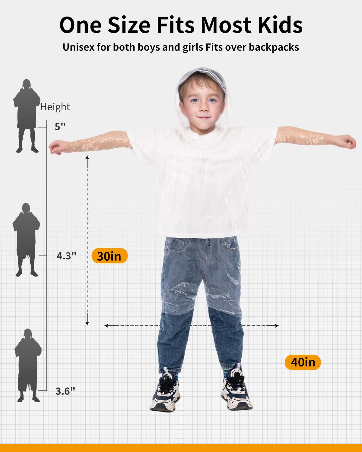 Multiple Sizes & Vibrant Colors for the Whole Family – Available in 6, 12, or 24-pack multi-packs, choose from bright colors including clear, red, yellow, blue, pink, green, and more. Our family rain ponchos come in generous oversized dimensions (Adult: 50"x45", Kid: 40"x30"), designed to easily fit over backpacks or coats—perfect for outdoor activities and emergency use.