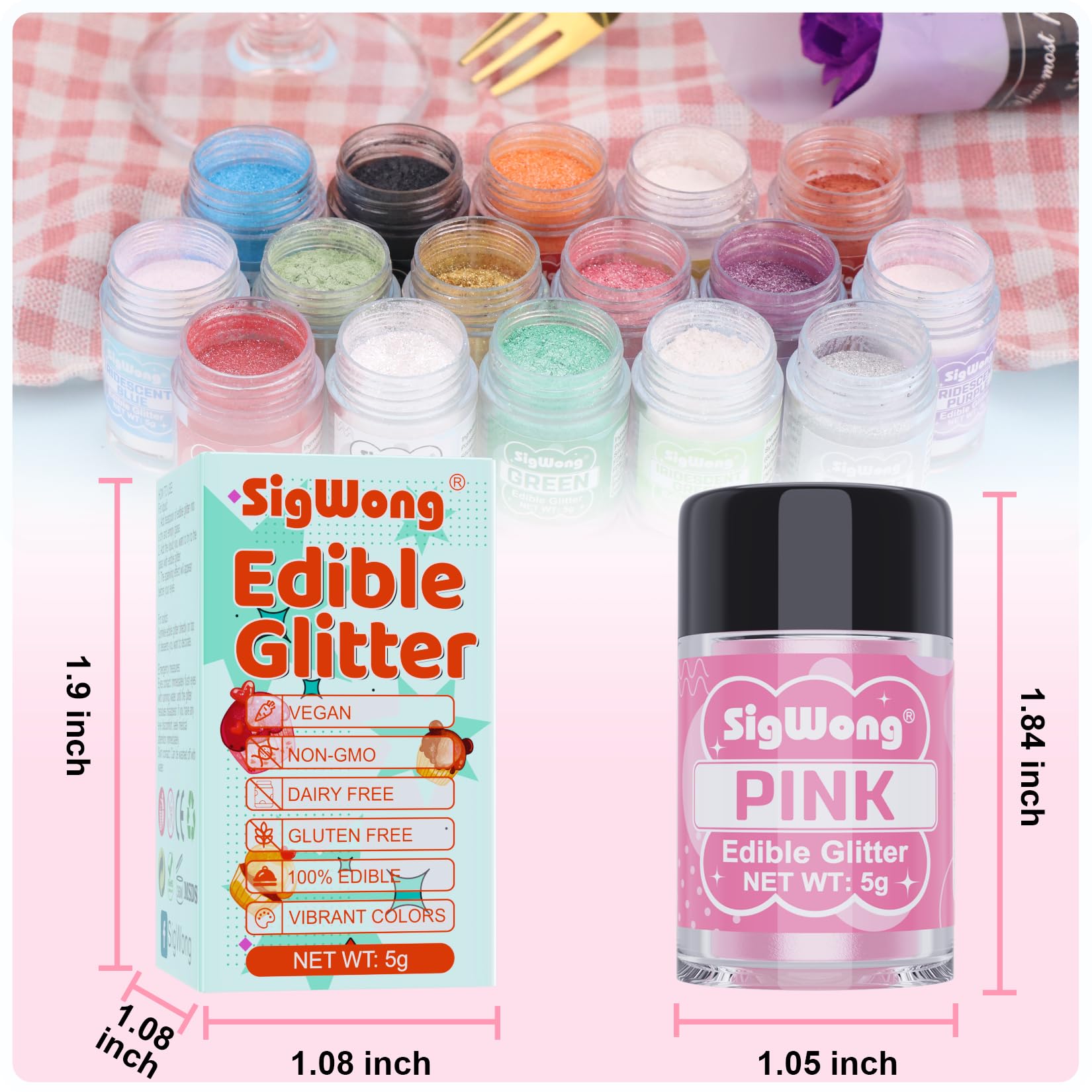 【Edible Glitter】: We offer edible glitter in a variety of colors, so you can match them to your party theme or personal preference to add a gorgeous shine to your drinks or baking!