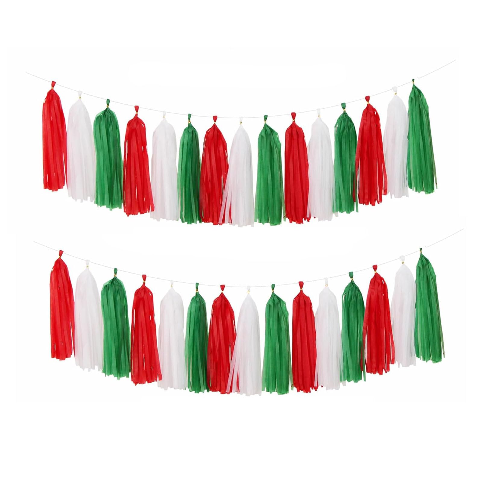 Red,Green and White Tassel Garland Banner Paper Tassels