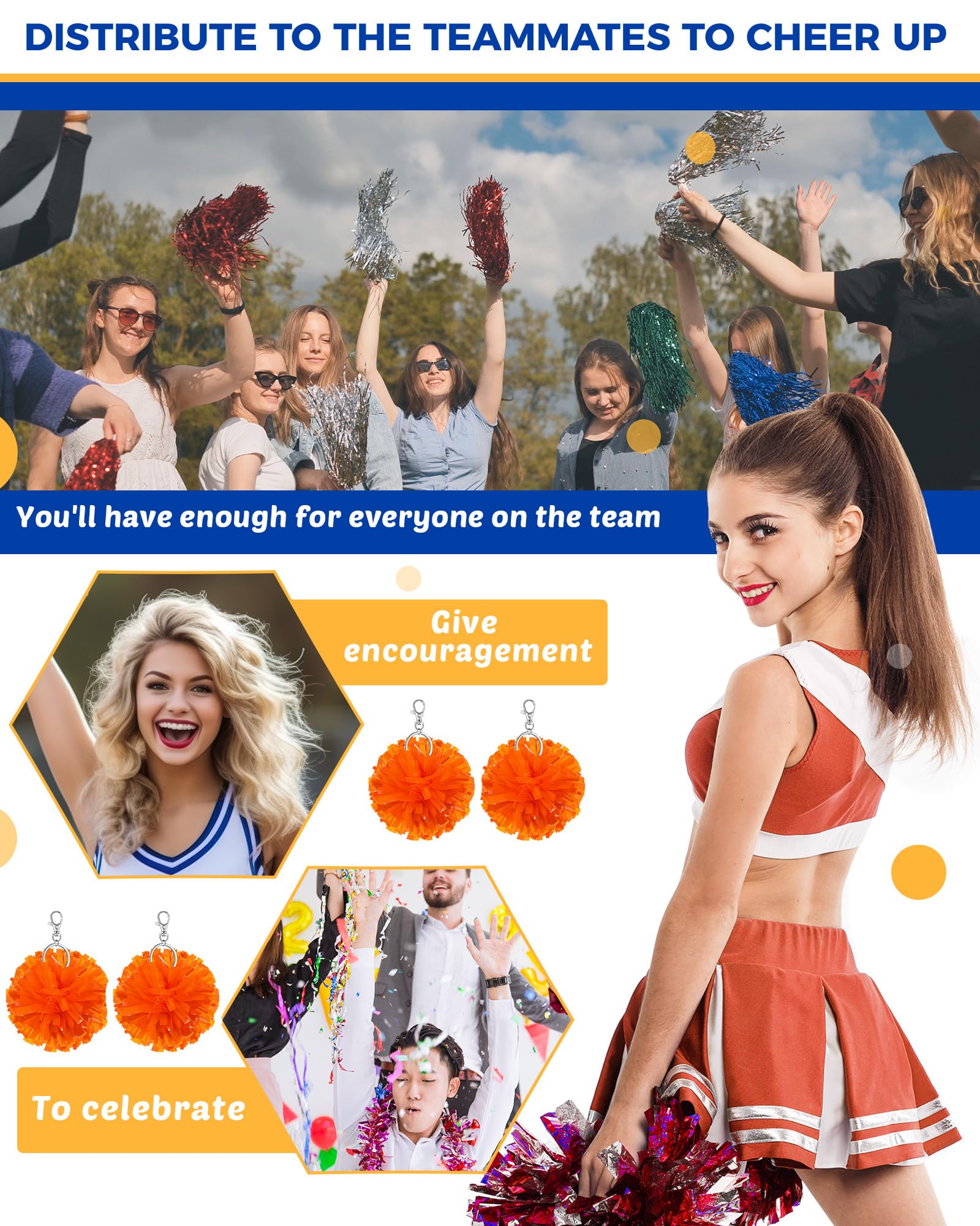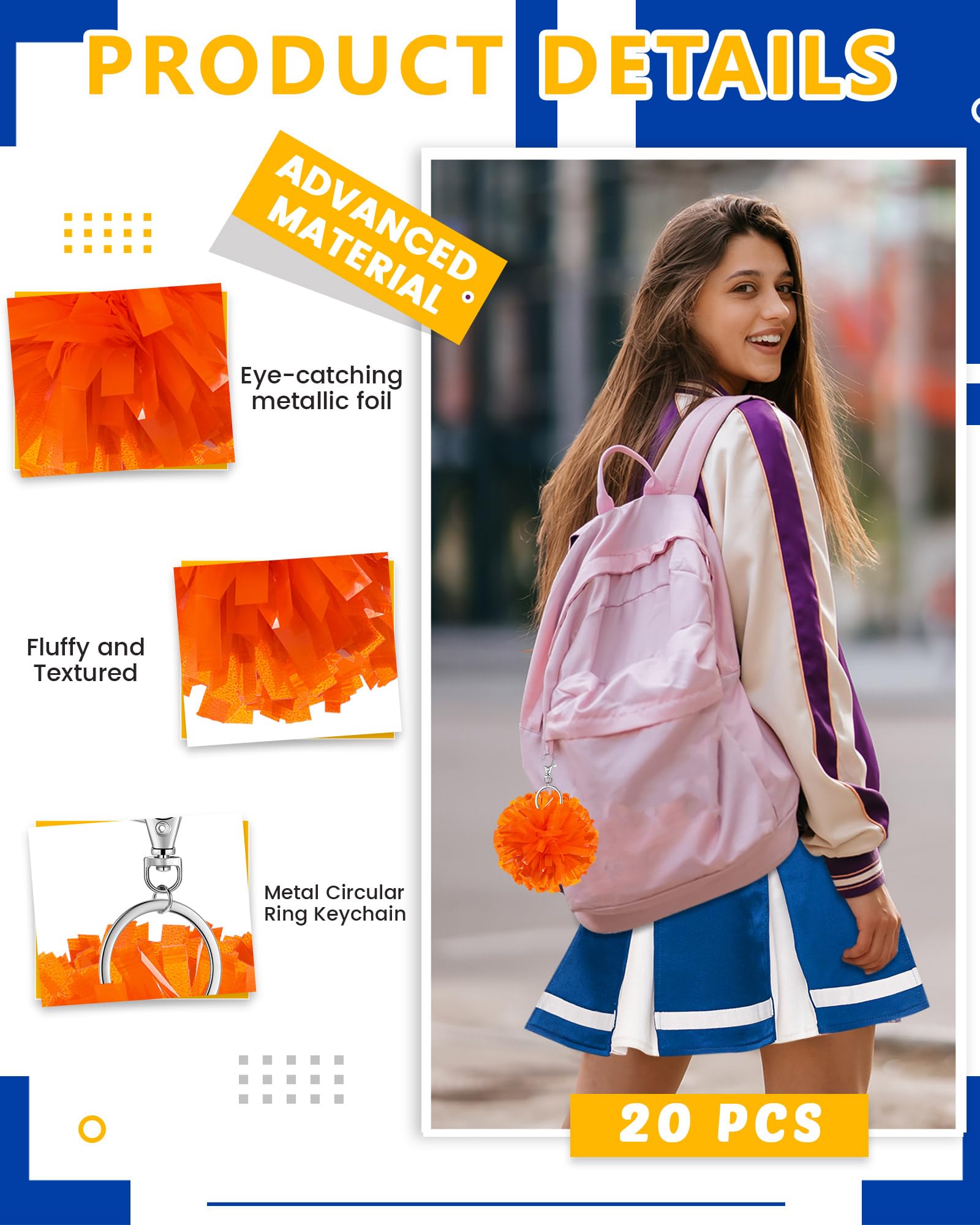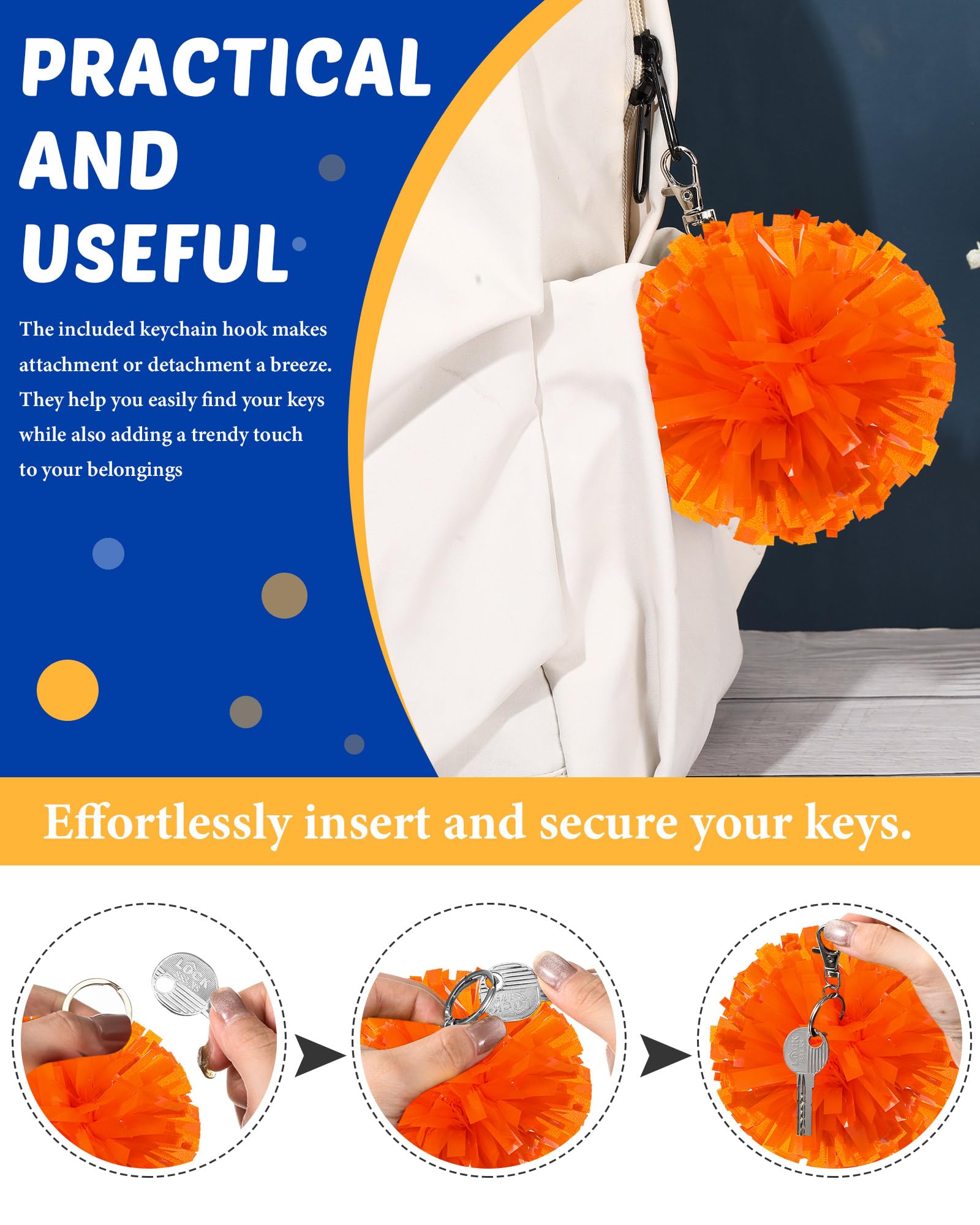 Sturdy Material and Vibrant Colors: these pom pom keychains are made of quality plastic and metal for durability, and feature nonfading, shimmering matte orange foil; They catch the eye, boost cheerleading spirit, and show your strong support for the team