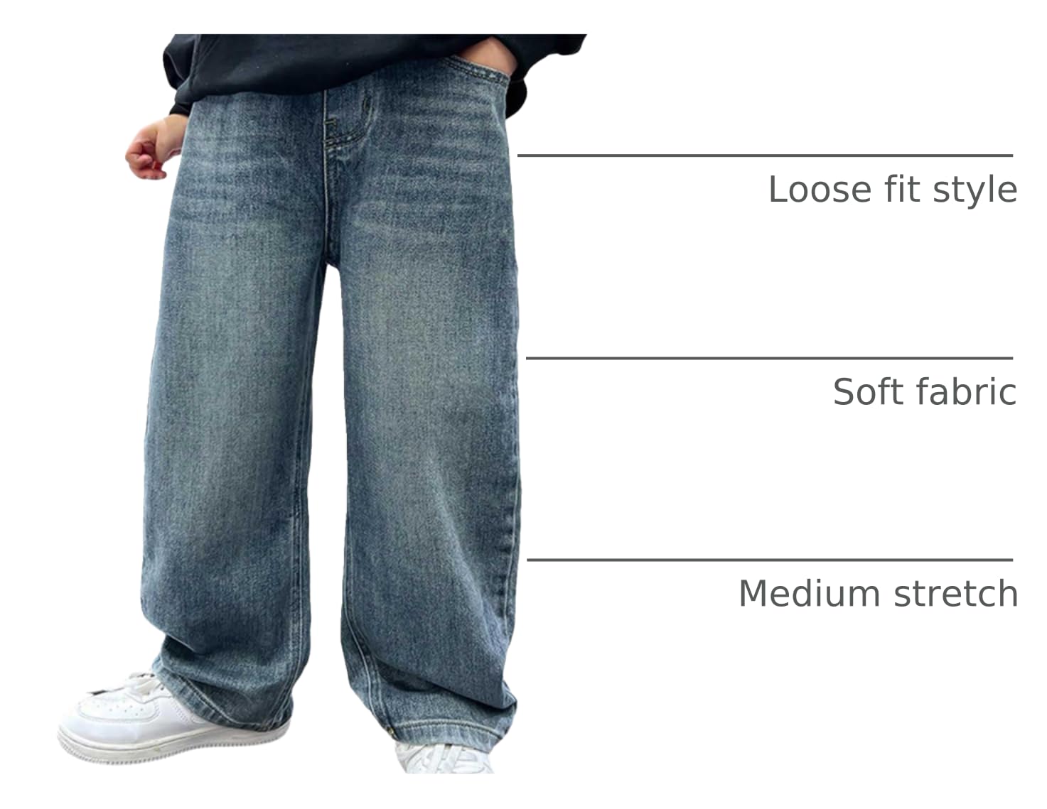Soft fabric has medium stretch. Straight Leg, Loose Fit, Button Front, Zipper Fly, Solid, Long Denim Pants